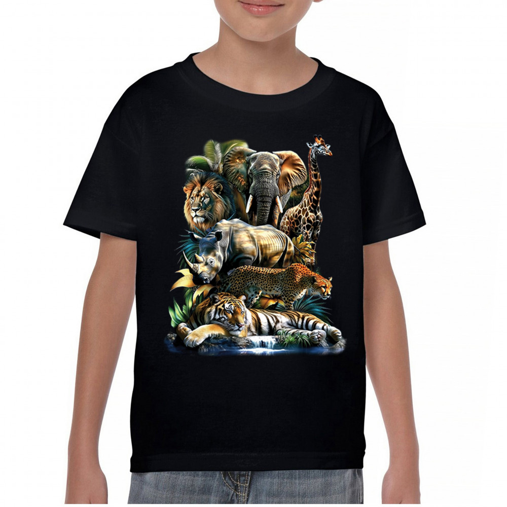 EXOTIC COLLAGE youth t-shirt jungle safari animal wild nature lion tiger kids black