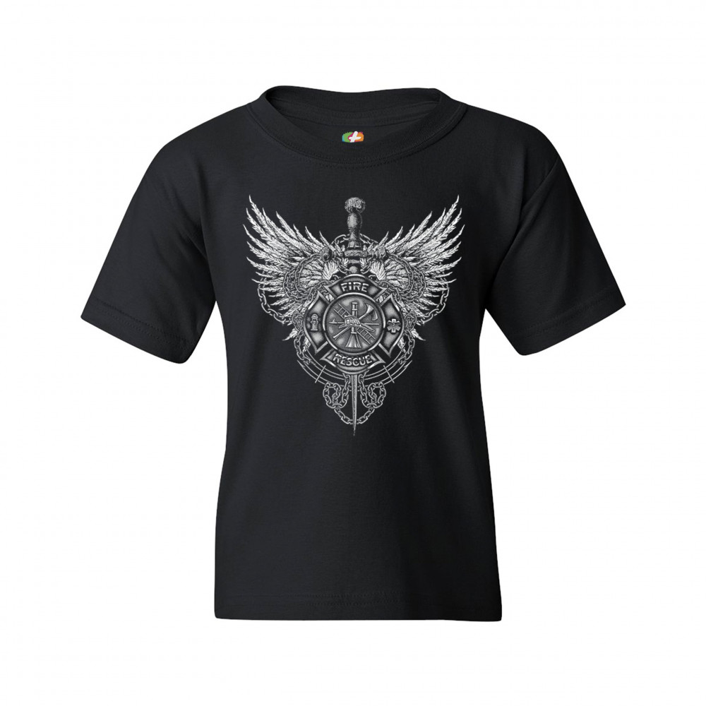 GOTHIC FIREFIGHTER EMBLEM youth t-shirt courage honor sacrifice kids black