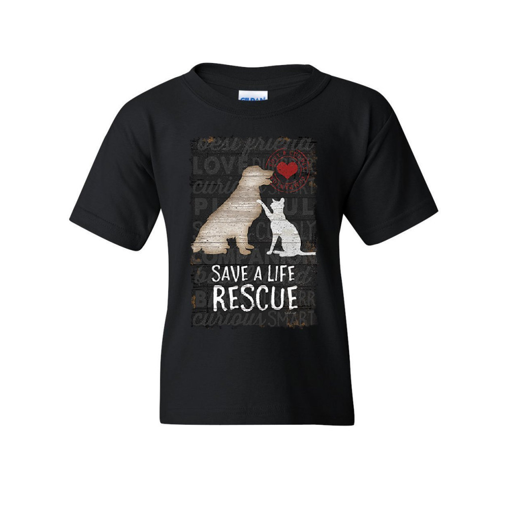 SAVE A LIFE rescue a pet youth t-shirt dog cat kitty puppy shelter paw kids tee black