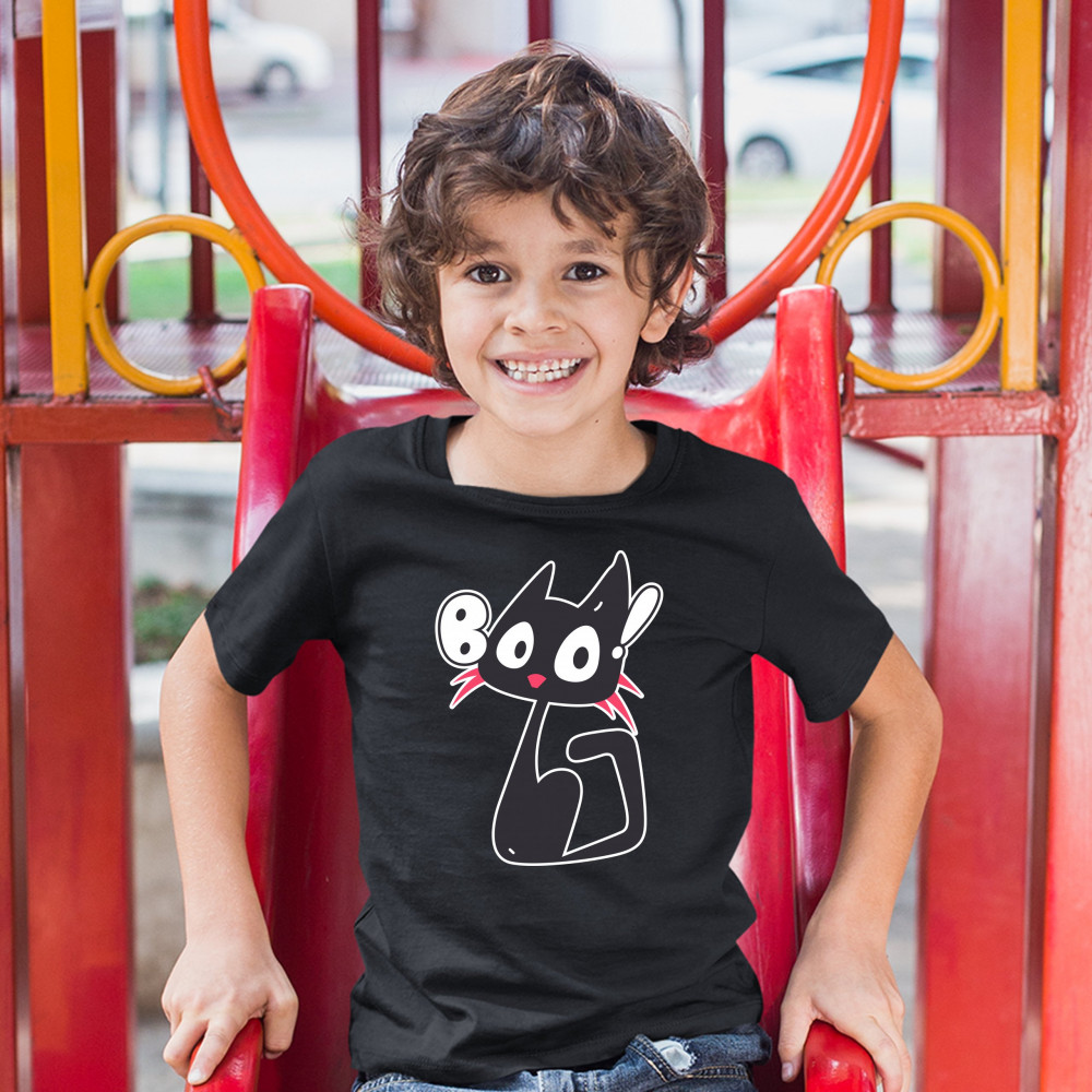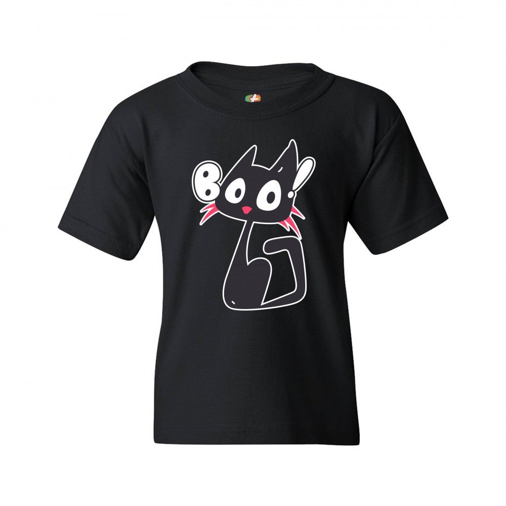 BOO KITTEN youth t-shirt happy halloween trick-or-treating funny cat kids black