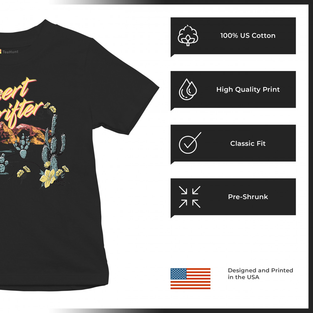 Let 'Desert Drifter' take you on a journey through the heart of the desert, from the blooming yuccas to the majestic mesas that kiss the horizon. This design is an ode to the spirit of the Southwest, a canvas that paints the serene solitude of desert life. It's an invitation to wander, to explore, and to embrace the boundless freedom that the desert represents. Adorn your space with the allure of the arid lands and the call of adventure.