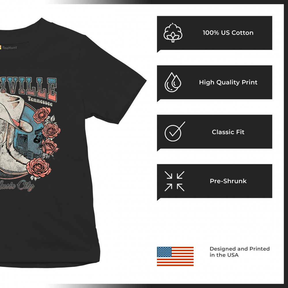 Show Nashville pride with a vintage cowgirl boots and hat design that blends country, western style, floral beauty, and southern grit.