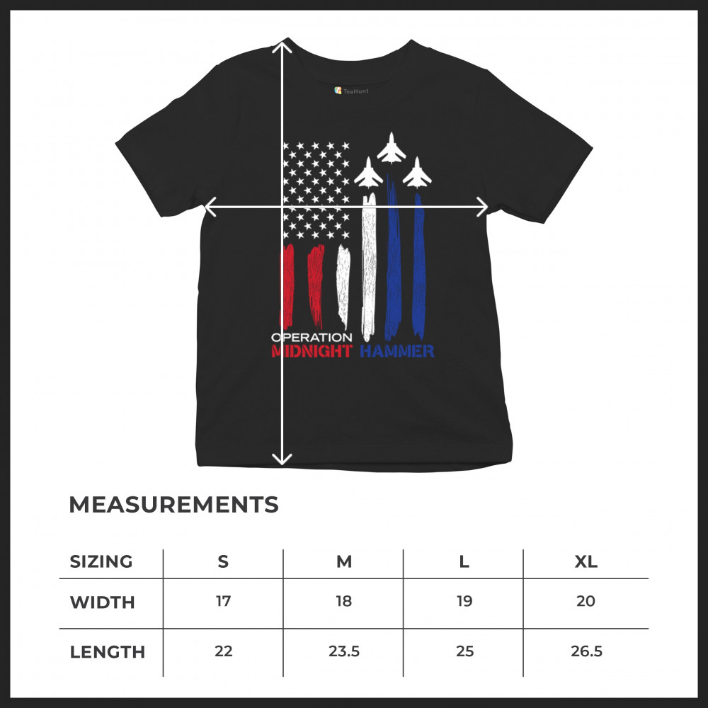Operation Midnight Hammer captures the spirit of American strength with bold jets soaring over a brushstroke U.S. flag. Designed for patriots, veterans, and conservatives who honor military power, airforce pride, and the fight to preserve national values. Wear it loud, wear it proud.