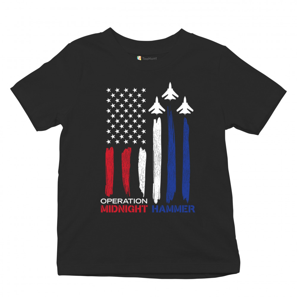 Operation Midnight Hammer design with jets and patriotic flag. Perfect for military pride, conservatives, and true America First supporters.
