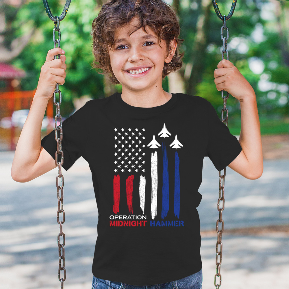 OPERATION MIDNIGHT HAMMER youth t-shirt american flag gbu 57 president kids black