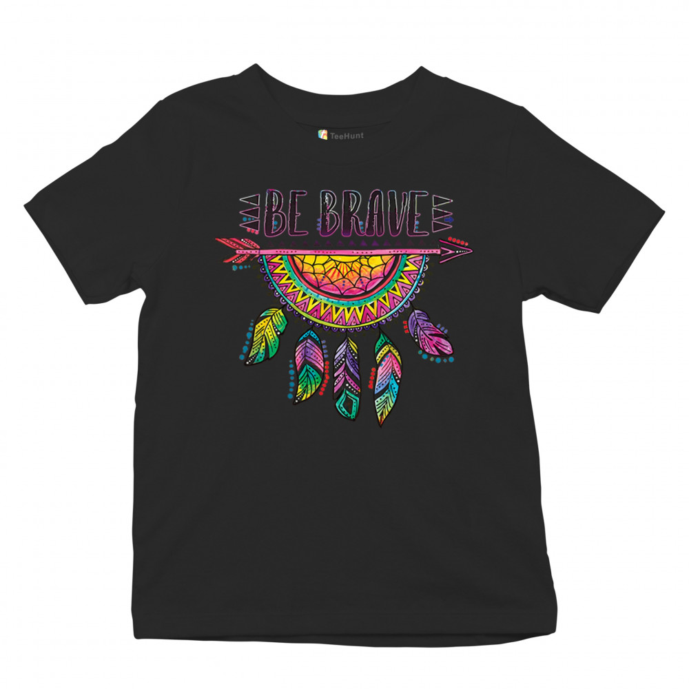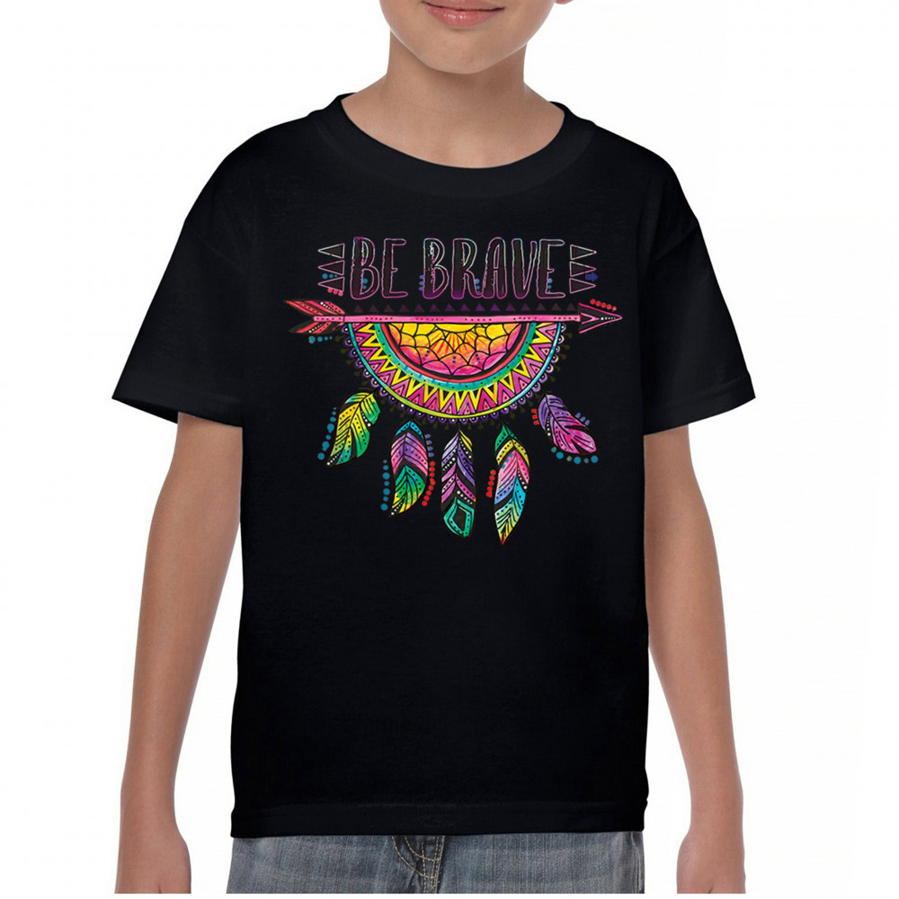BE BRAVE DREAM CATCHER youth t-shirt dean russo motivation feather kids black