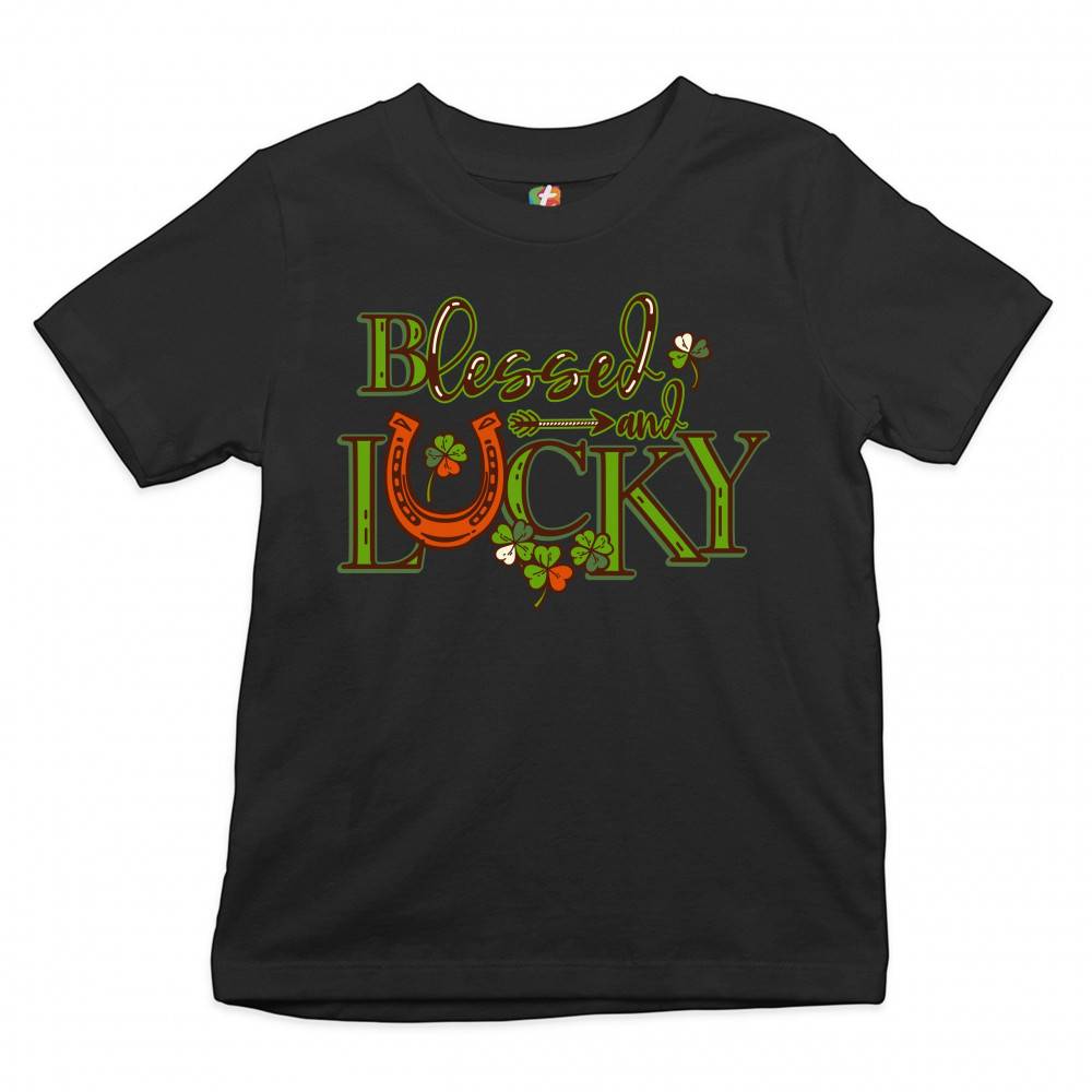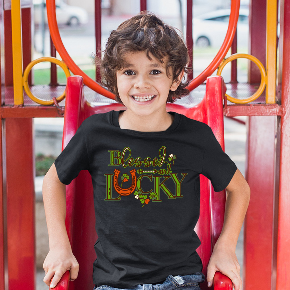 BLESSED AND LUCKY youth t-shirt st. patrick's day clover irish malarkey kids black