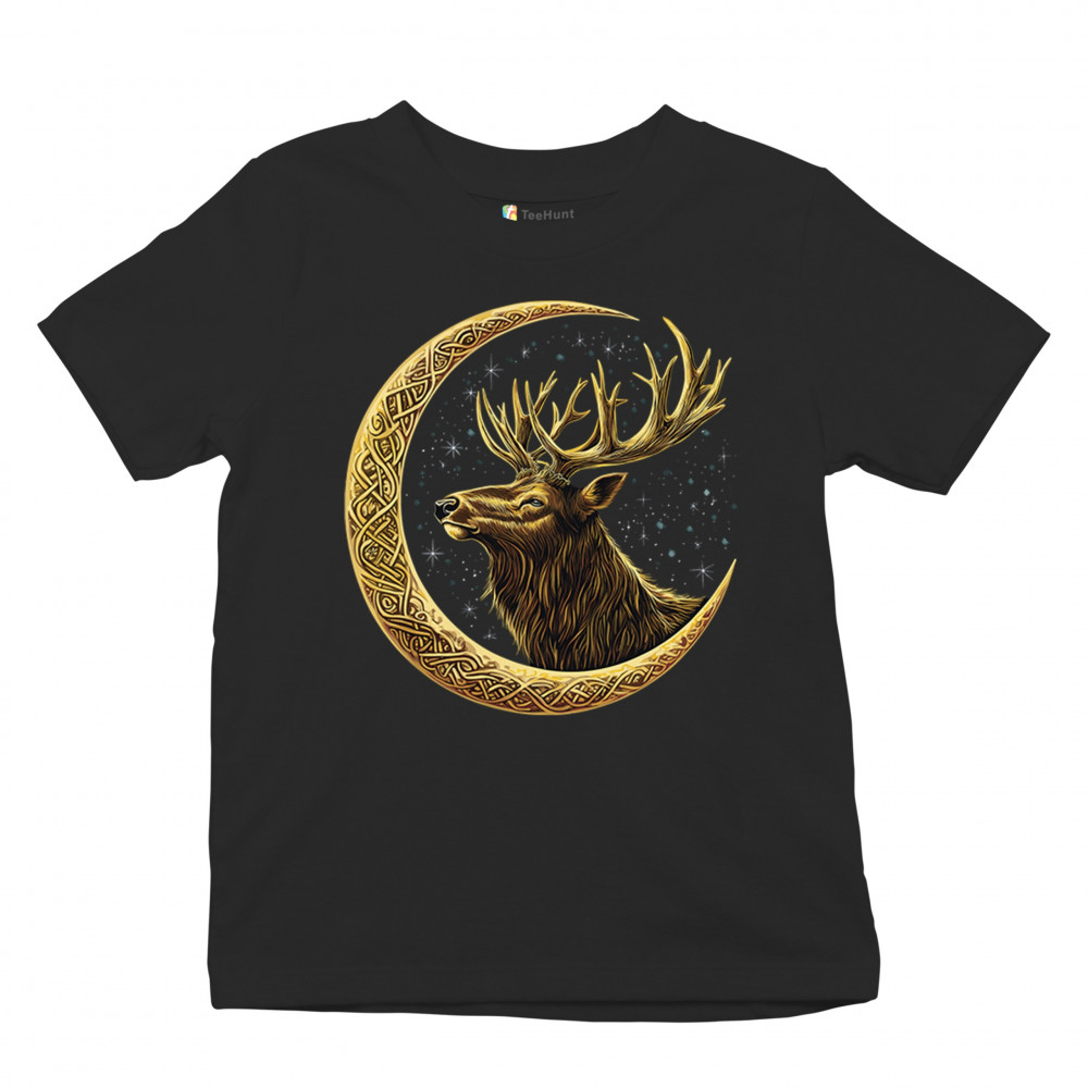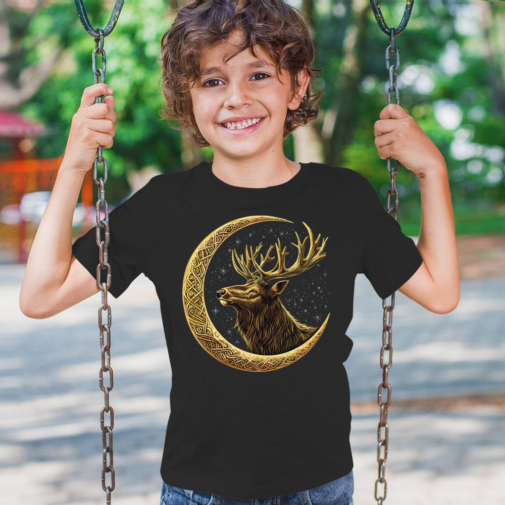 CELTIC MOON ELK youth t-shirt north mystic nature spiritual nordic buck kids black
