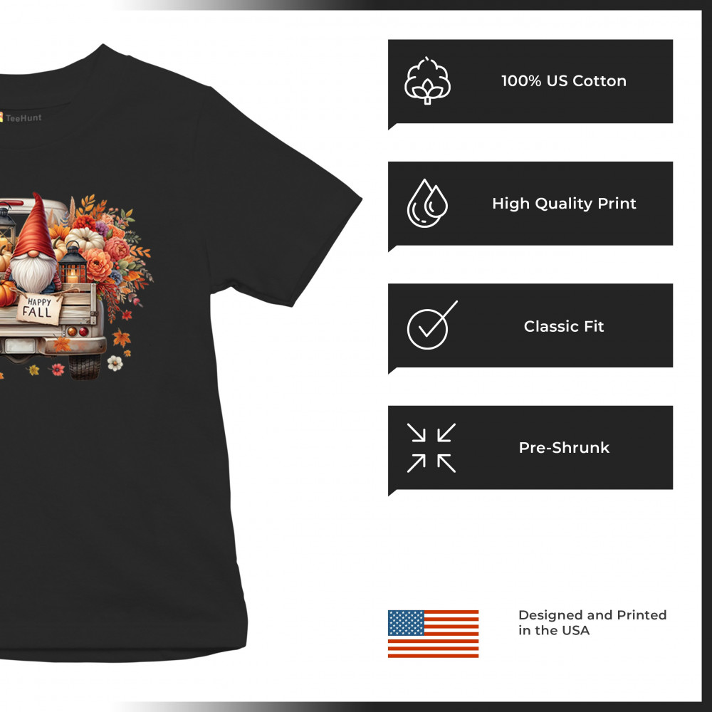 Bring fall charm into your wardrobe with this rustic gnome truck design. Overflowing with pumpkins, wildflowers, and a glowing lantern, it’s perfect for Thanksgiving, farmhouse gatherings, harvest festivals, and celebrating the floral autumn season in cozy style.