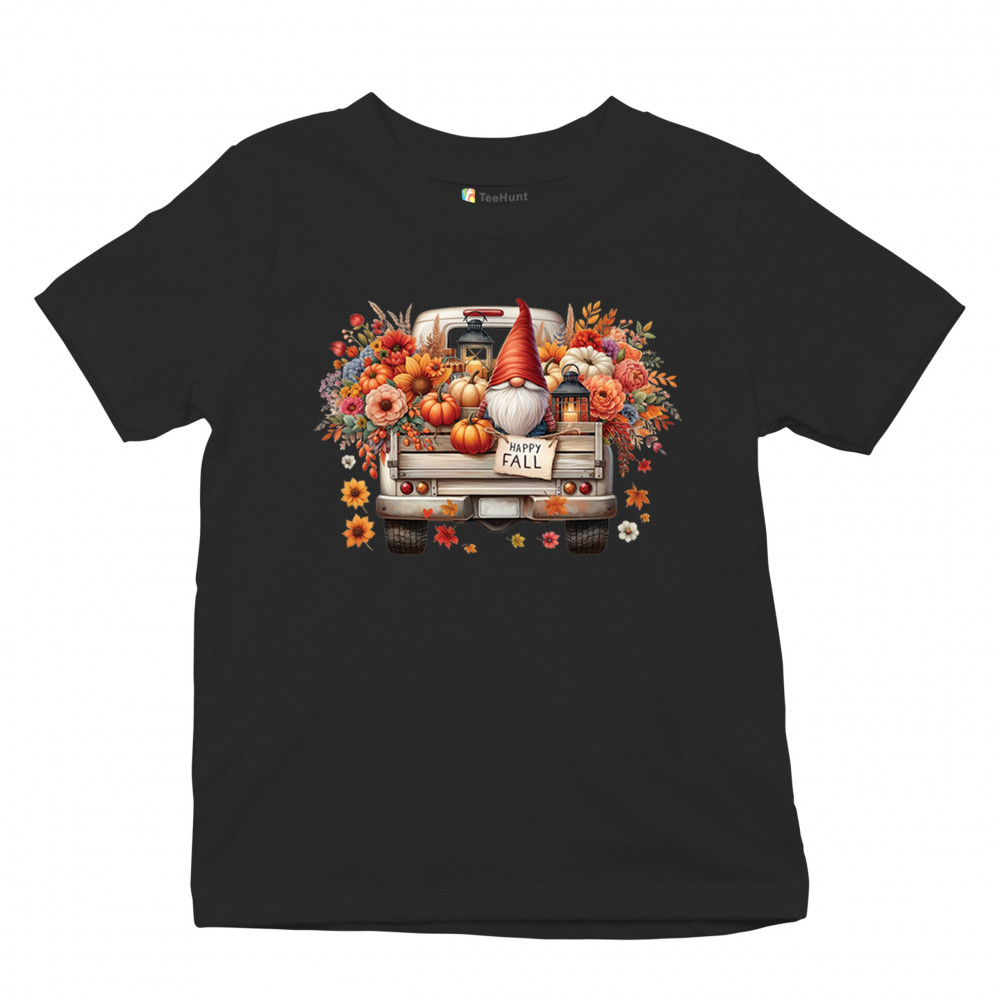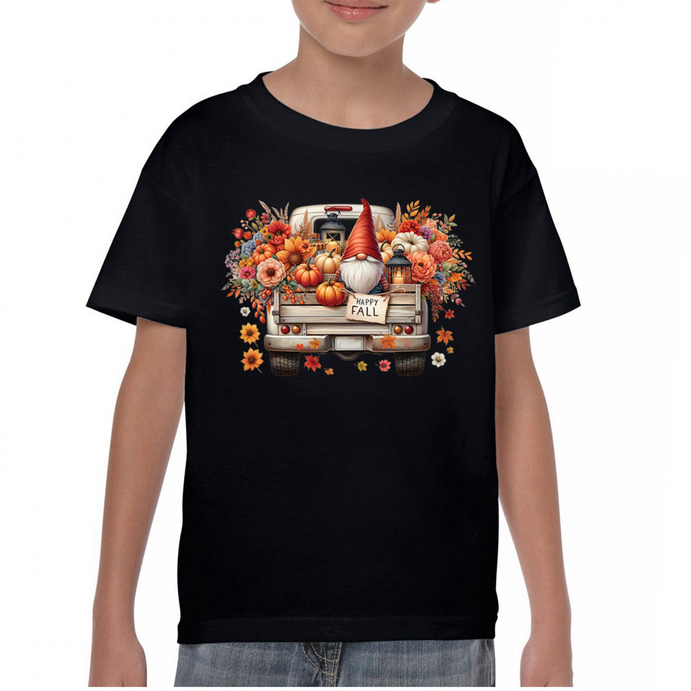 FALL GNOME TRUCK youth t-shirt pumpkin patch cozy thanksgiving harvest kids black