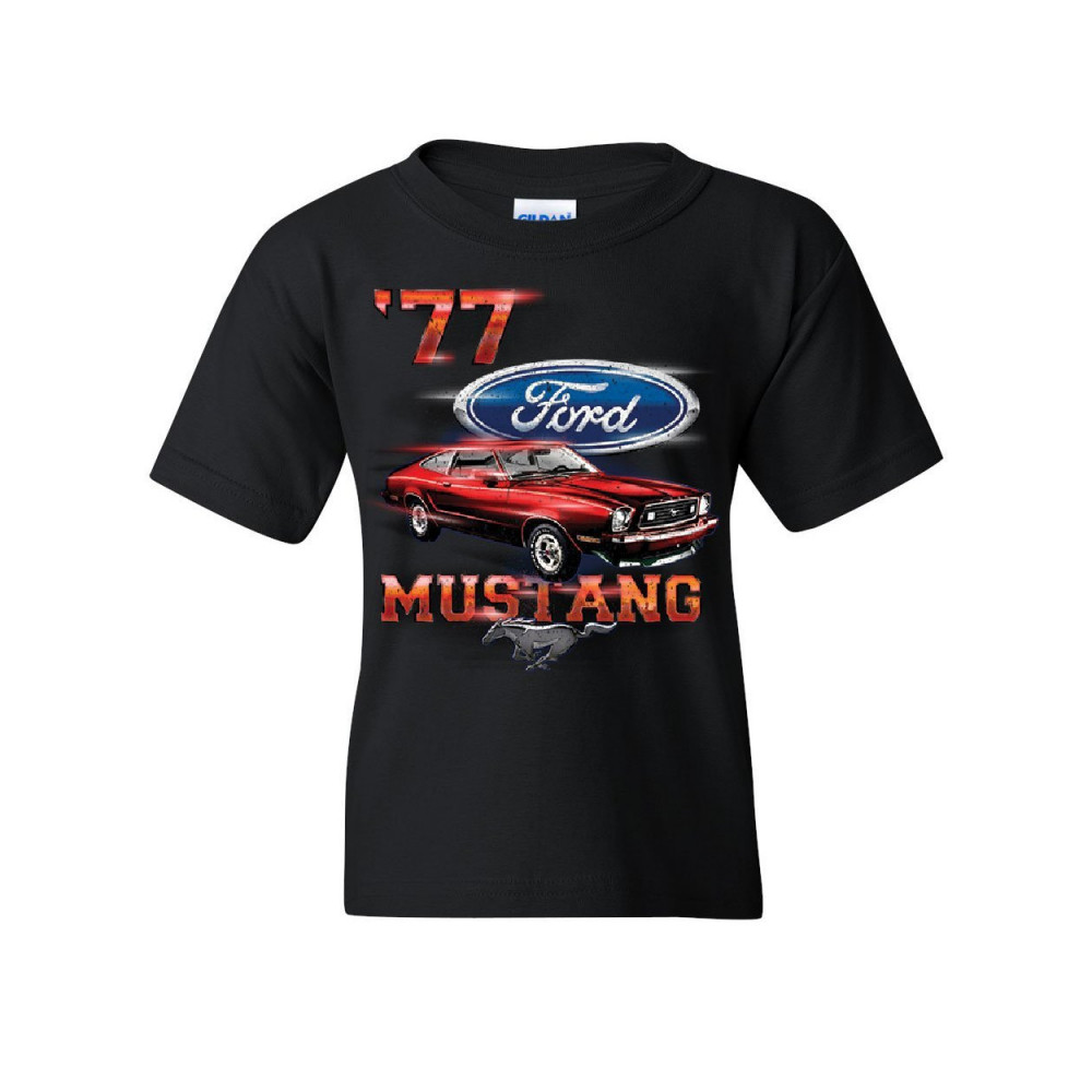 FORD MUSTANG '77 youth t-shirt american classic muscle car kids tee black
