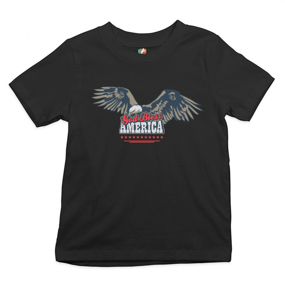 GOD BLESS AMERICA youth t-shirt 4th of july bald eagle patriotic kids black