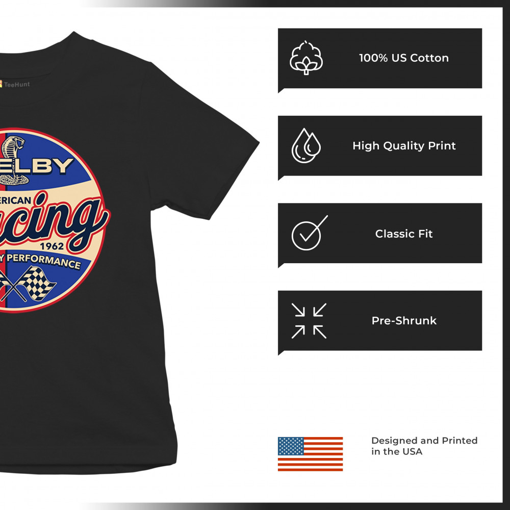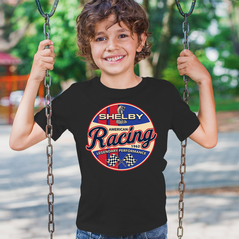 Rev up your wardrobe with our Shelby American Racing design, a tribute to 50 years of Ford Mustang glory and Carroll Shelby's racing legacy.