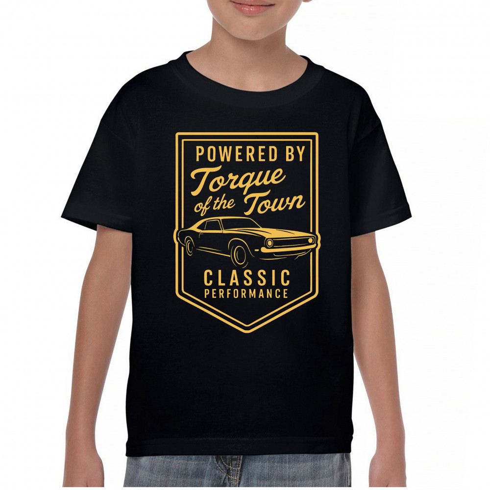 TORQUE OF THE TOWN youth t-shirt vintage classic american muscle car v8 kids black