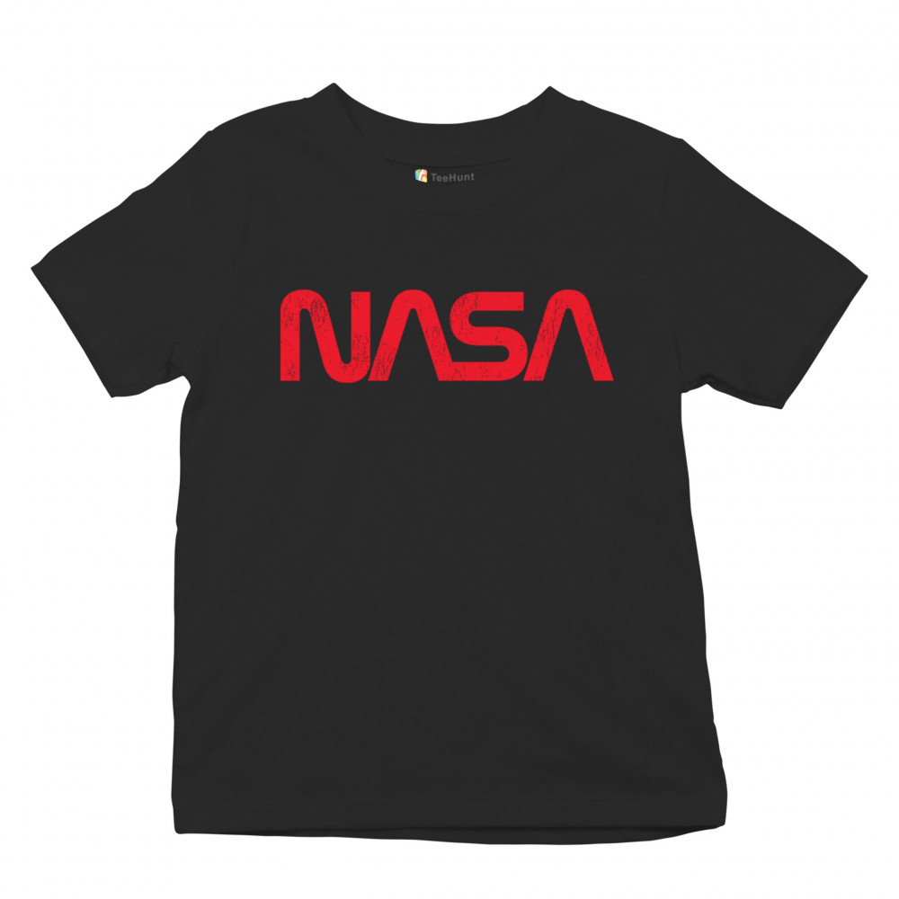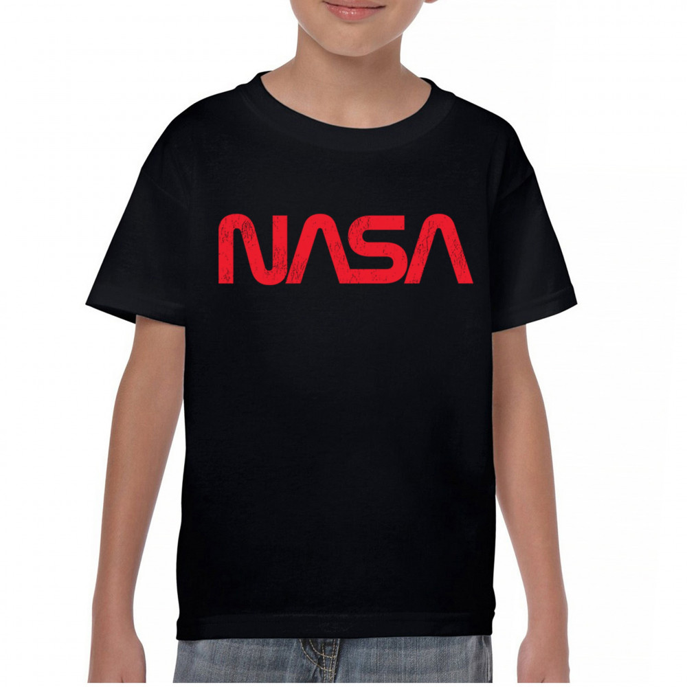 VINTAGE NASA WORM LOGO youth t-shirt astronaut space exploration emblem kids black