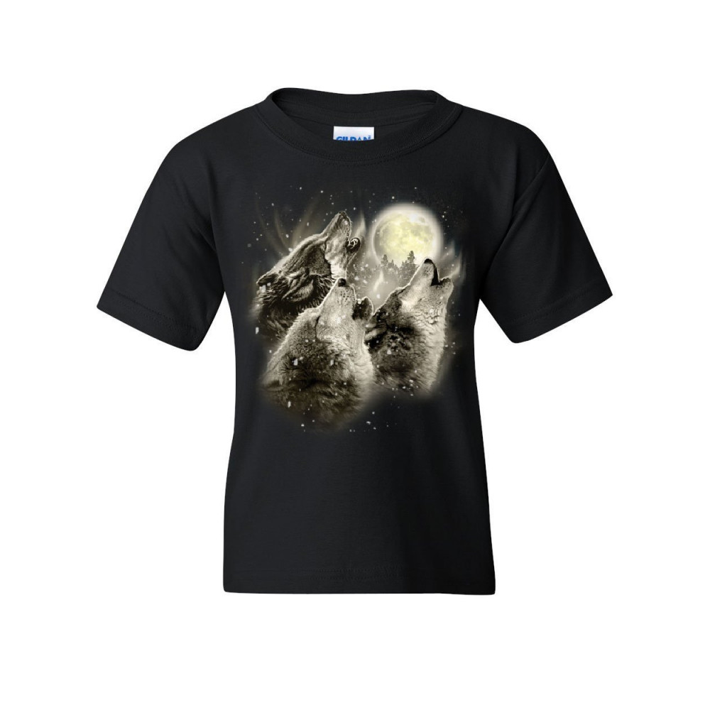 WOLF HOWL youth t-shirt wild wolf pack predator animals nature moon kids tee black