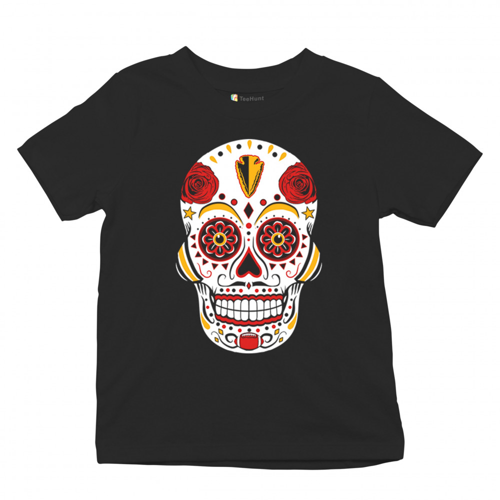 KANSAS CITY SUGAR SKULL youth t-shirt kc die-hard football fan tailgating kids black