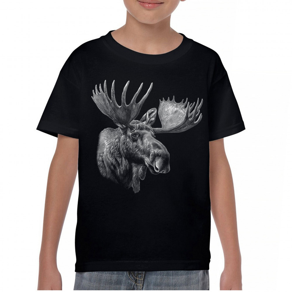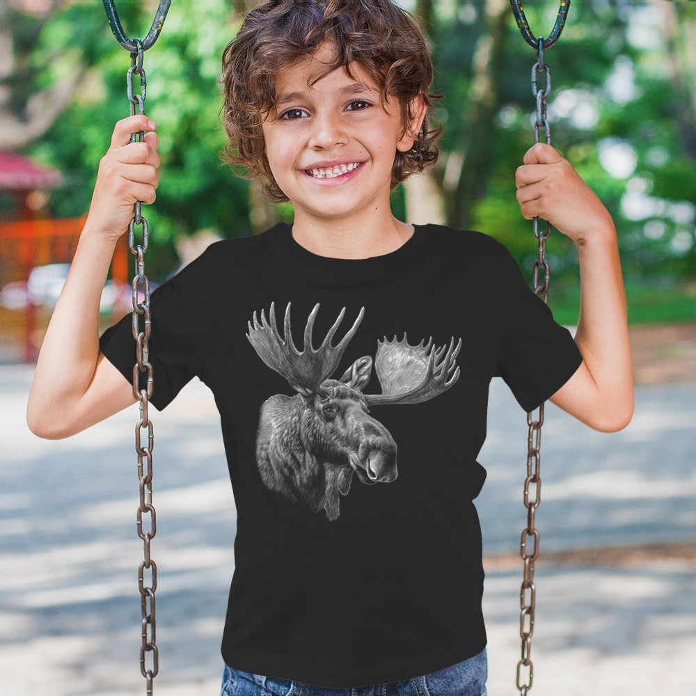 MAJESTIC MOOSE PORTRAIT youth t-shirt wildlife nature northwoods animal kids black