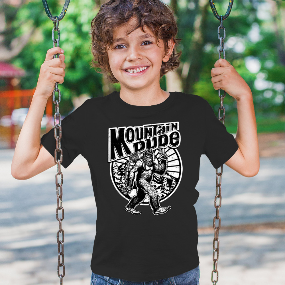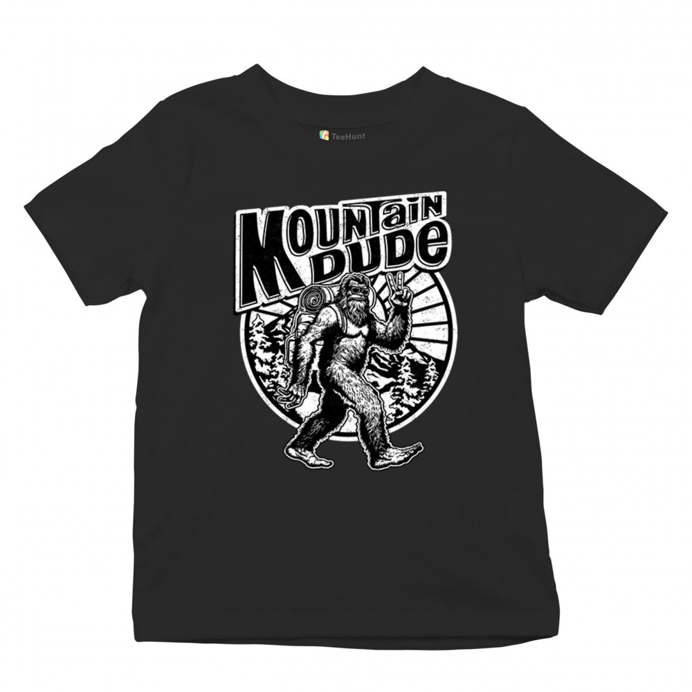 Celebrate outdoor adventures with the "Mountain Dude" design, featuring Sasquatch and mountain scenery. Perfect for hikers, campers, and Bigfoot fans.