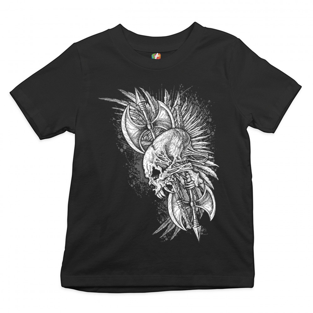 WINGED SKULL youth t-shirt viking warrior skeleton labrys axe gothic kids black