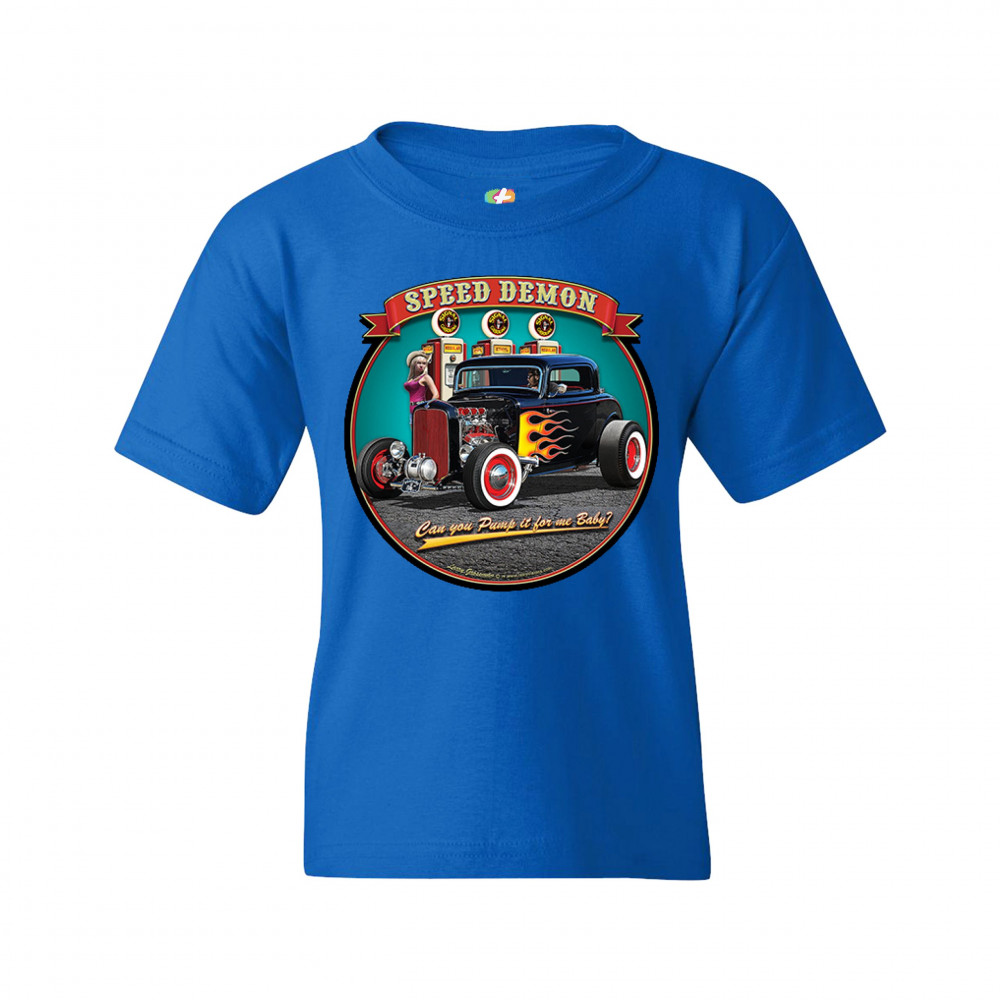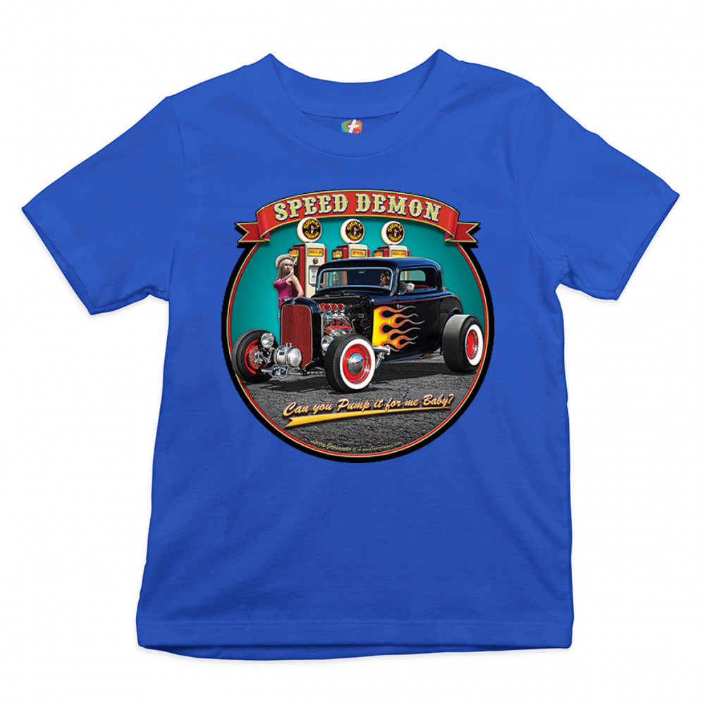 1932 DEUCE SPEED DEMON youth t-shirt hot rod muscle car drag racing kids royal blue