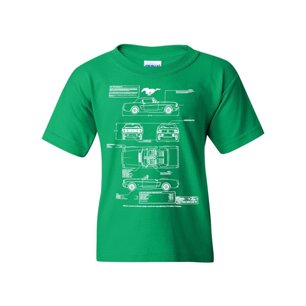 1966 FORD MUSTANG GT BLUEPRINT youth t-shirt american classic tee green