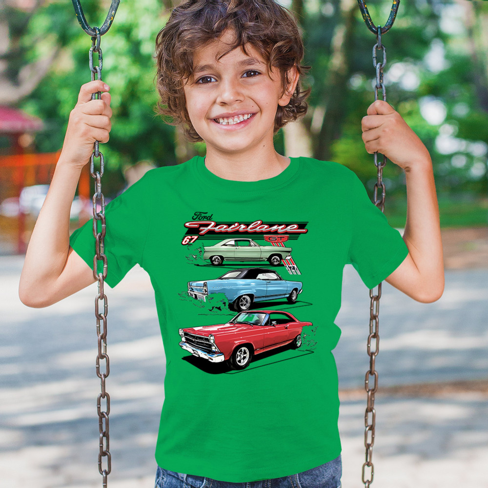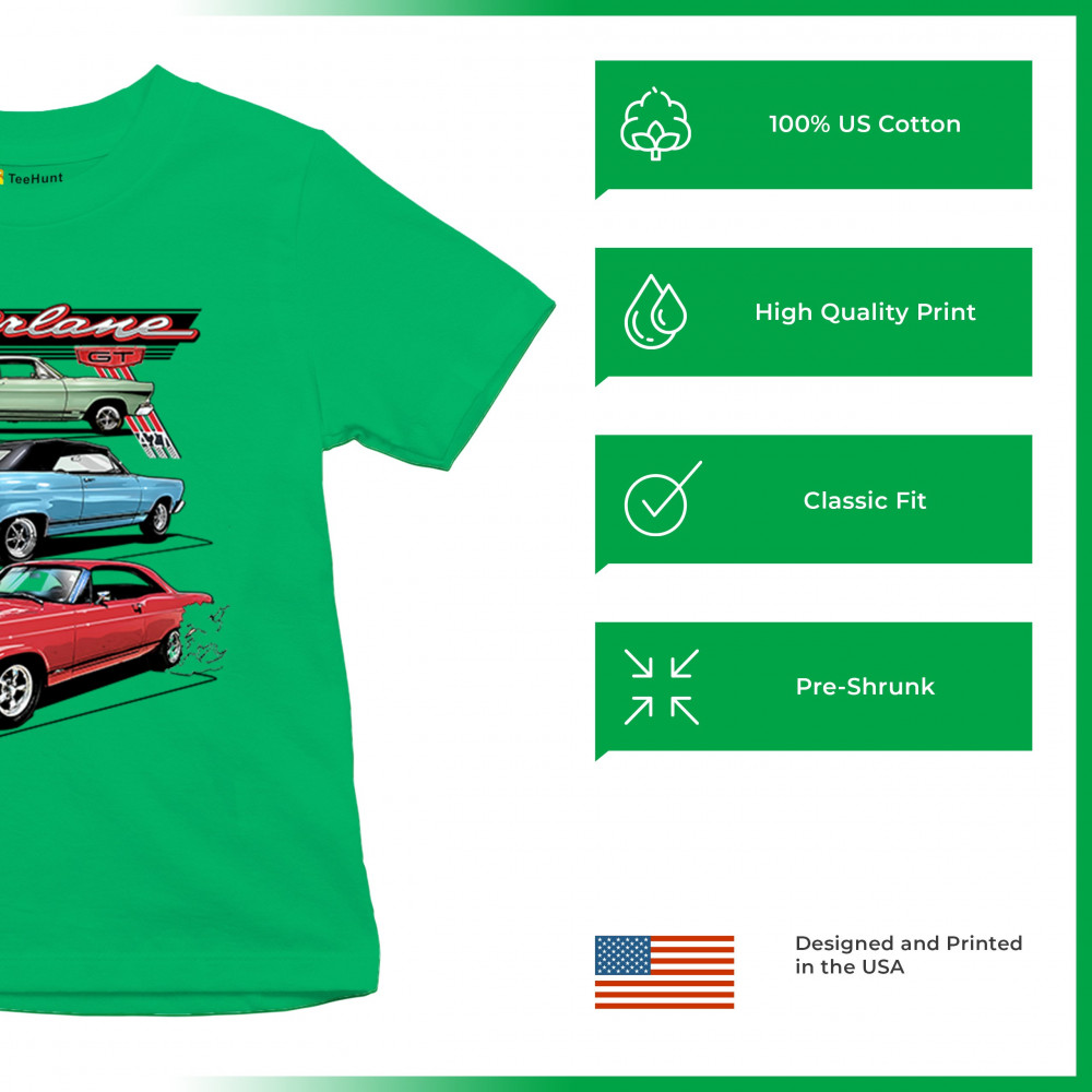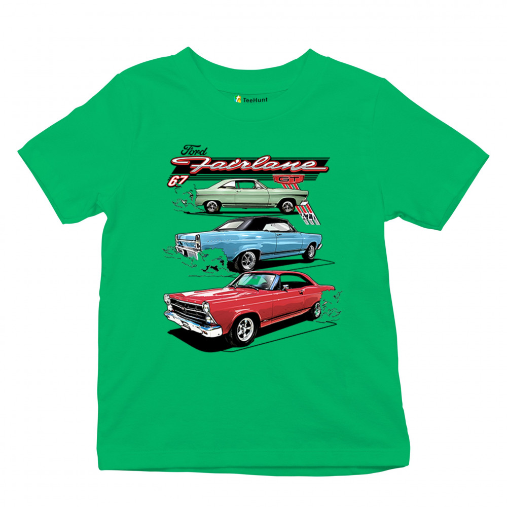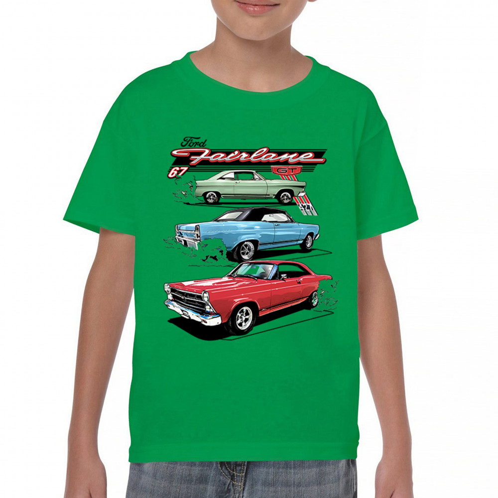 Features three 1967 Ford Fairlane GTs with retro burnout style. Great for muscle car fans, Ford collectors, car shows, and vintage meetups.