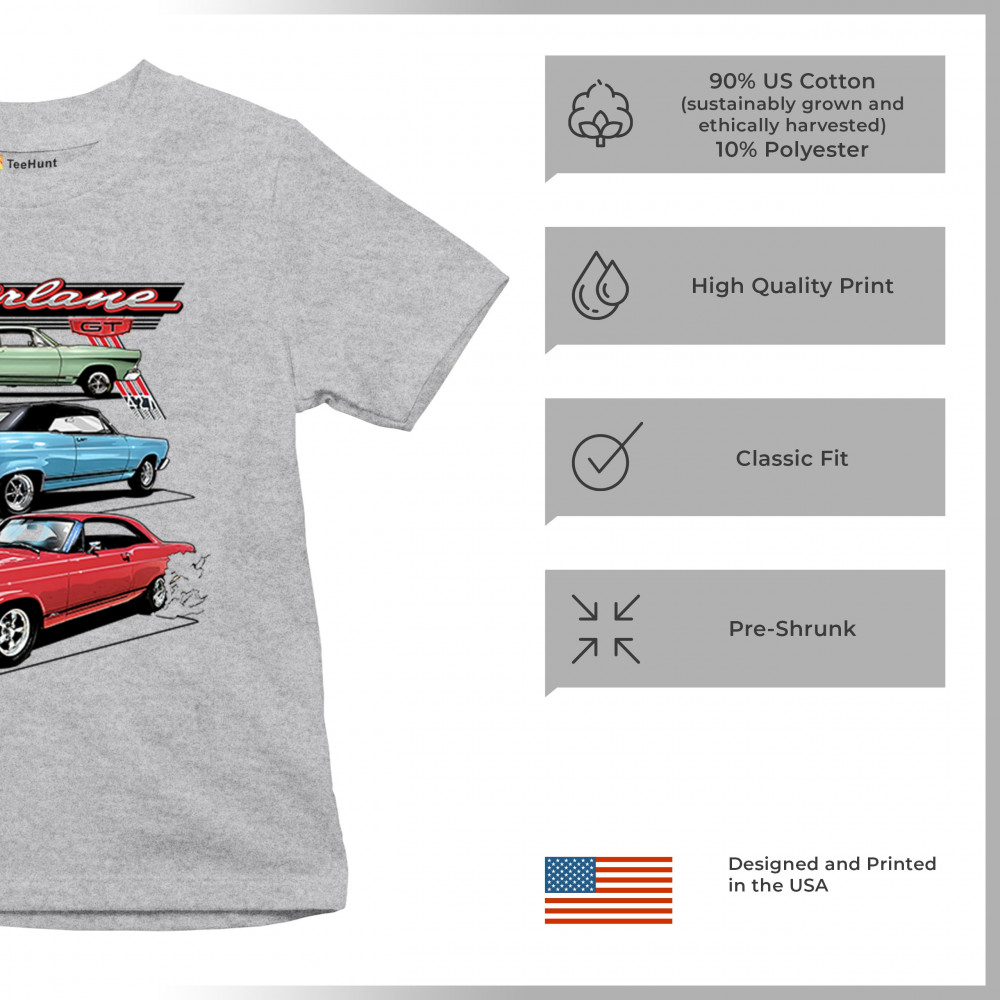Celebrate the raw power of the 1967 Ford Fairlane GT with this burnout-charged design. Featuring three muscle cars in retro detail, it's made for vintage Ford collectors, classic car fans, and V8 enthusiasts. Whether you're heading to a show or wrenching in the garage, this design brings the roar of the 60s.