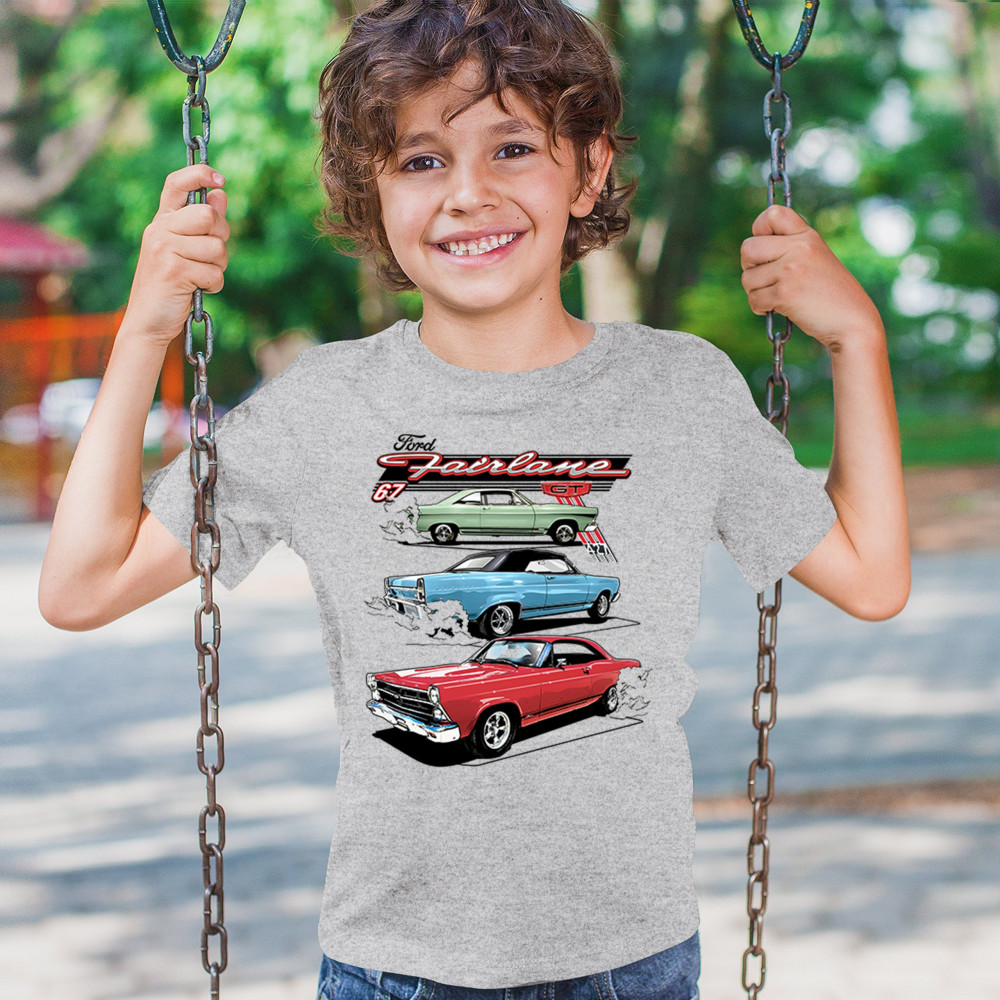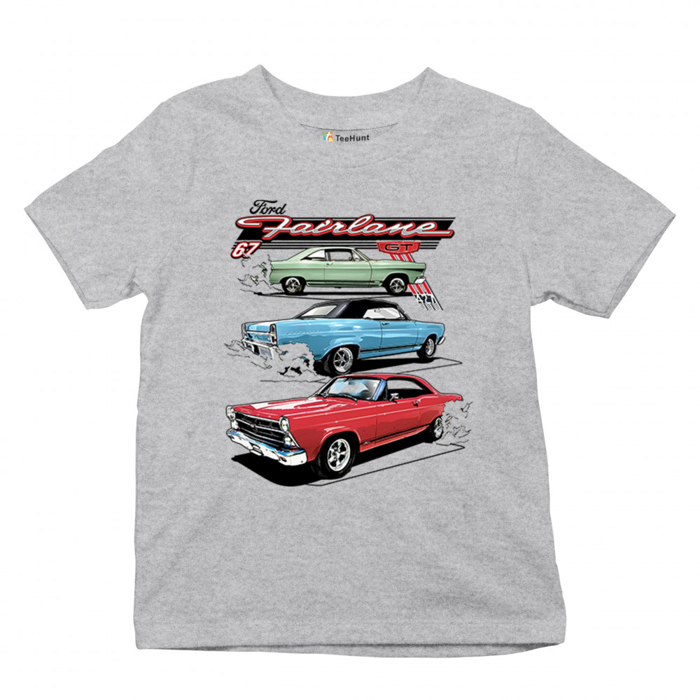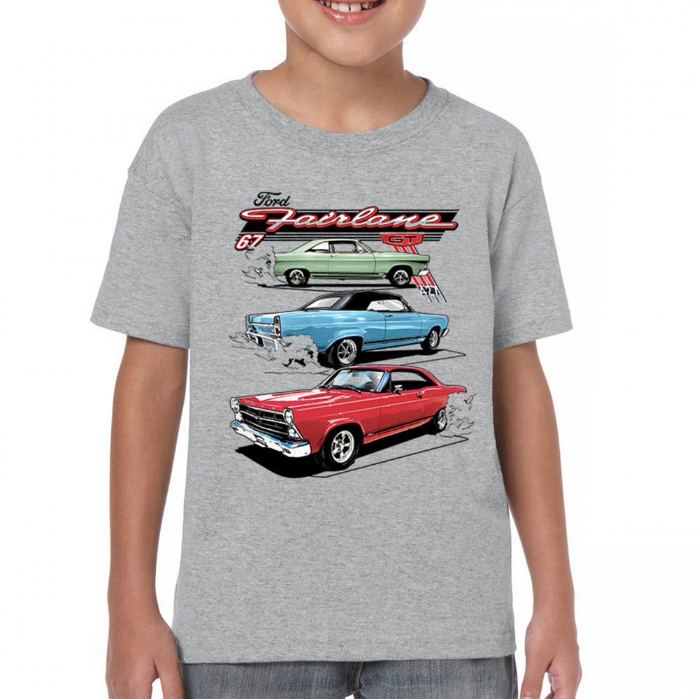 Features three 1967 Ford Fairlane GTs with retro burnout style. Great for muscle car fans, Ford collectors, car shows, and vintage meetups.