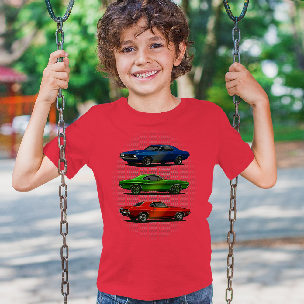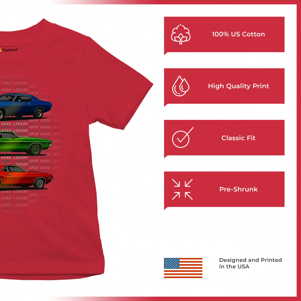 Three bold 1970 muscle cars, stacked in red, green, and blue, celebrate vintage power and road legend status. This retro-inspired design captures the essence of American car culture—made for gearheads, V8 fans, and anyone who lives for classic performance, heritage, and style.