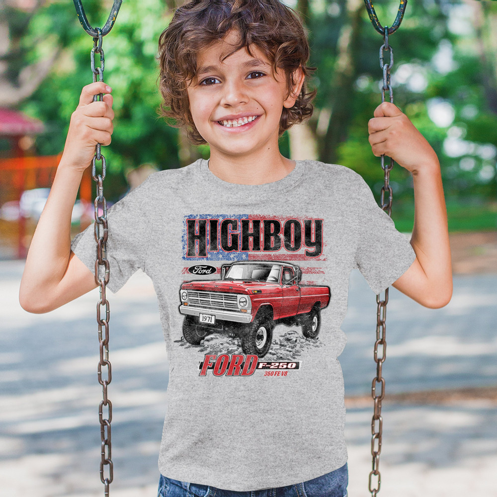 This vintage truck design features a 1971 Ford F-250 Highboy 4x4 with a classic lifted stance and patriotic flag background. Bold and nostalgic, it’s perfect for classic truck fans, 4x4 lovers, off-roaders, and collectors who appreciate American V8 tradition. Show it off at truck shows, meets, or cruise nights.