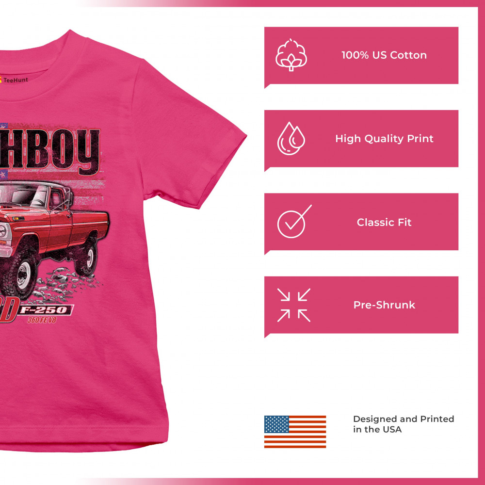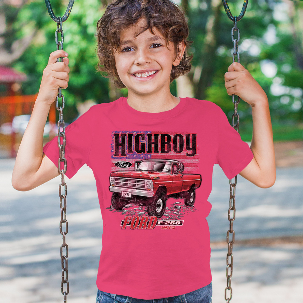 1971 Ford Highboy truck design with 360 V8 power, lifted 4x4 stance, and bold retro American styling for classic pickup lovers.