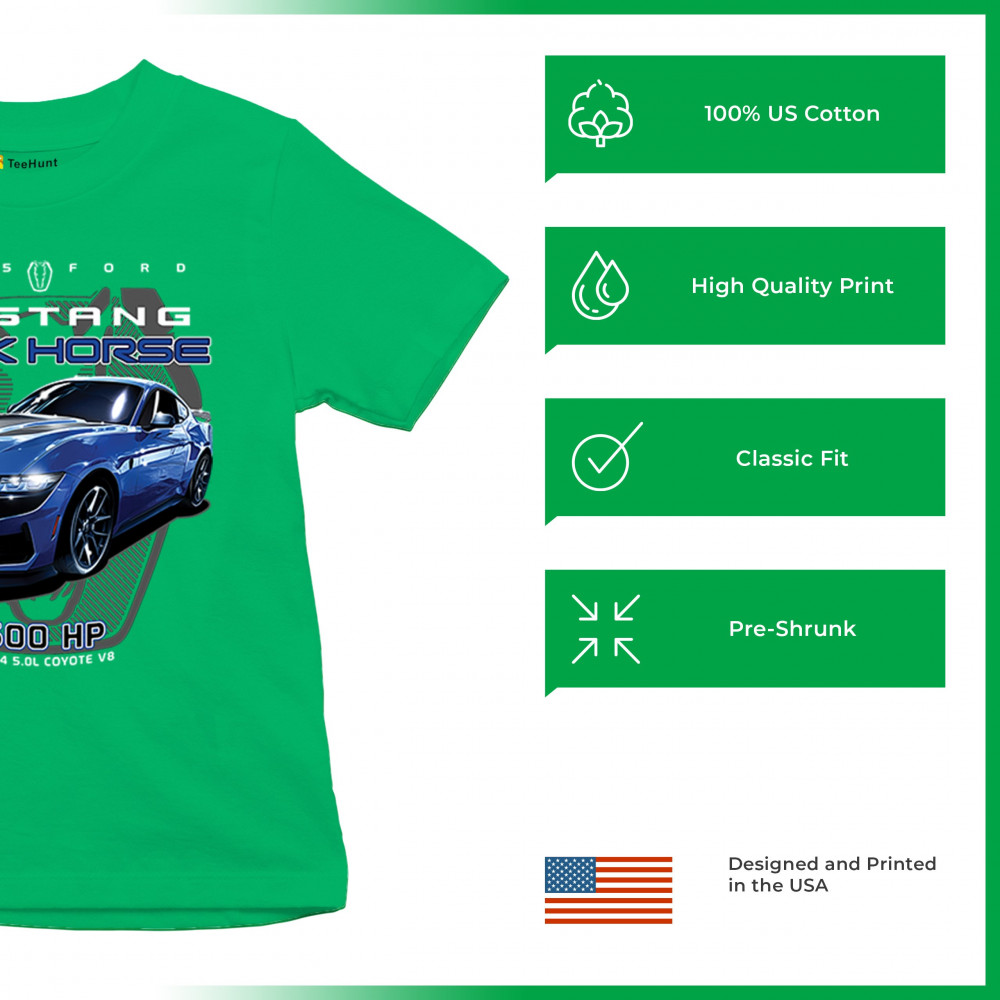 Mustang Dark Horse 500 HP design featuring V8 muscle and street styling. Perfect for Ford fans, car meets, and modern performance lovers.