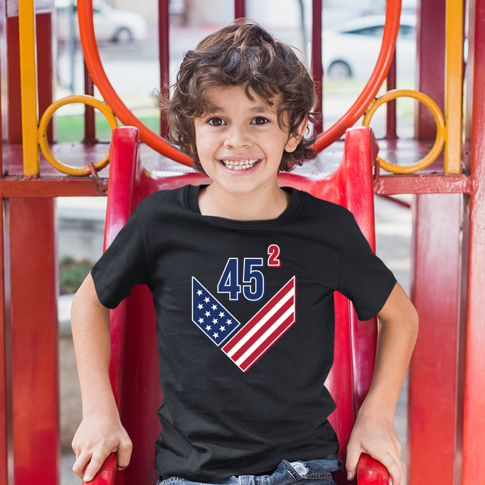 45 SQUARED youth t-shirt two terms re-elect donald trump conservative kids black