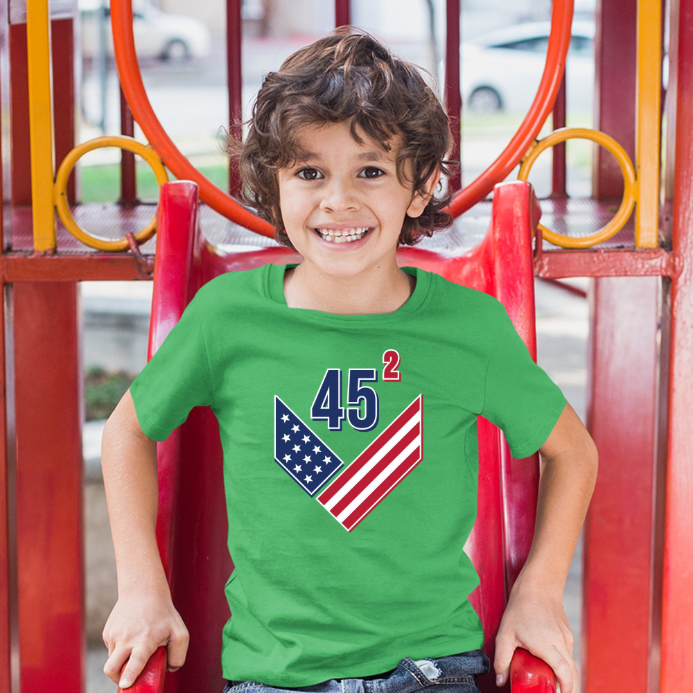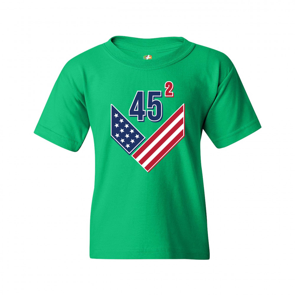 45 SQUARED youth t-shirt two terms re-elect donald trump conservative kids green