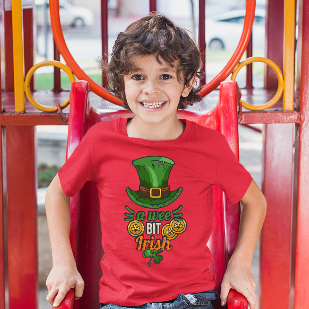 A WEE BIT IRISH youth t-shirt st. patrick's day shamrock leprechaun hat kids red