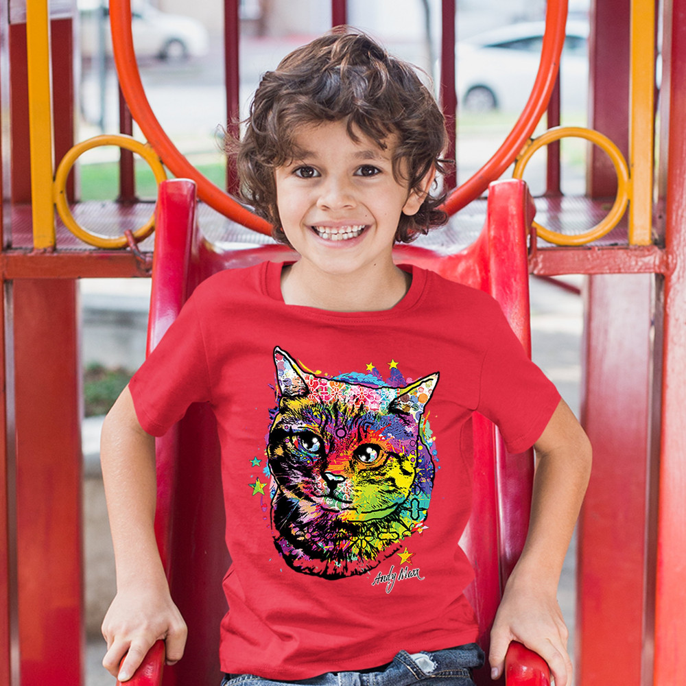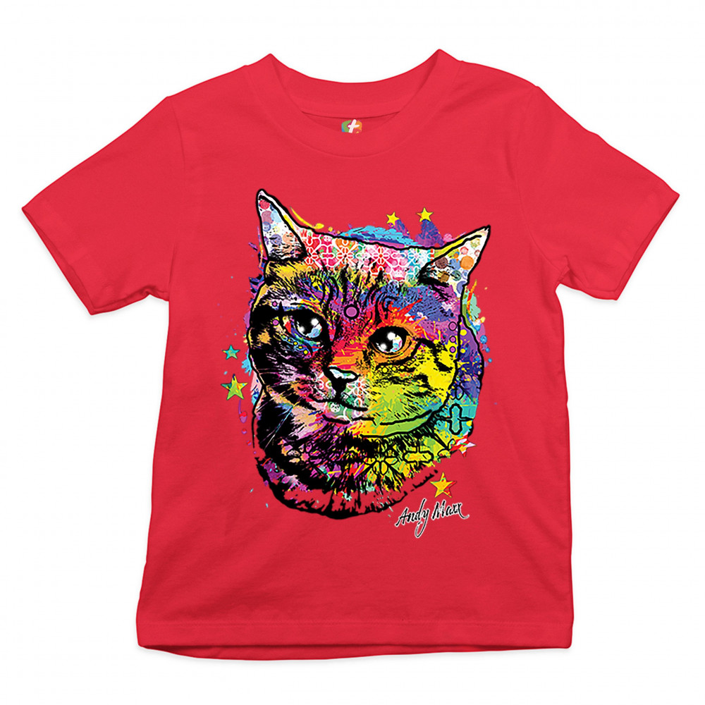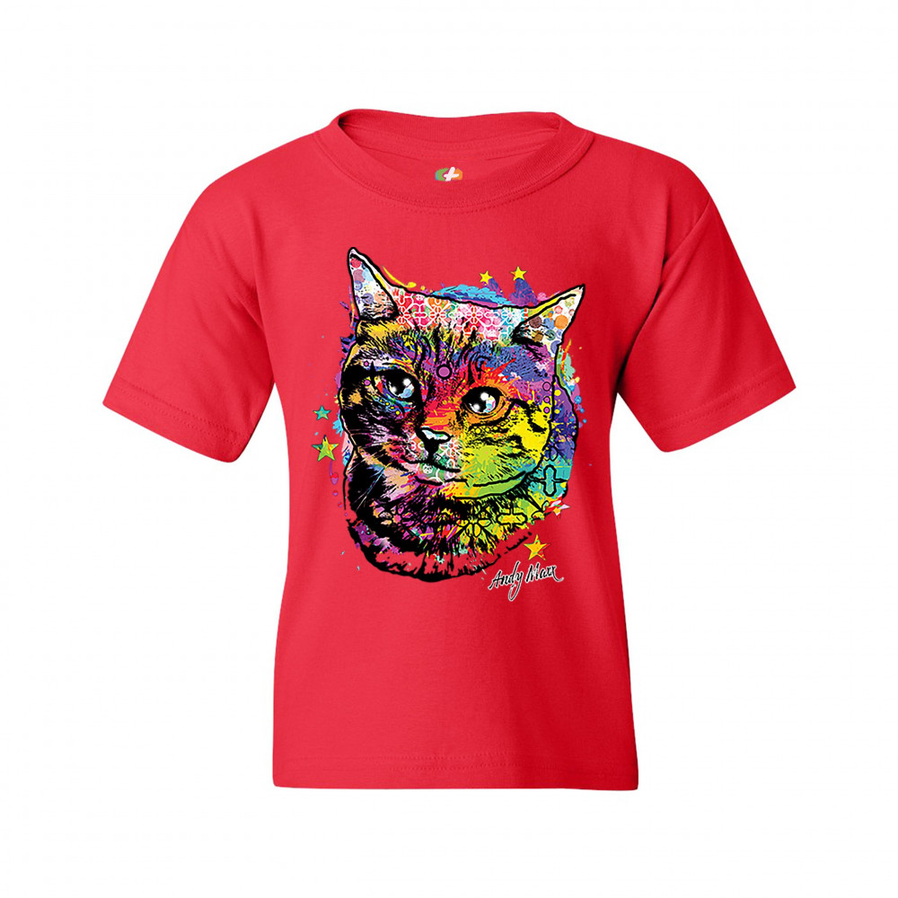 ADORABLE KITTEN youth t-shirt neon multicolor kitty andy maxx cat lover kids red