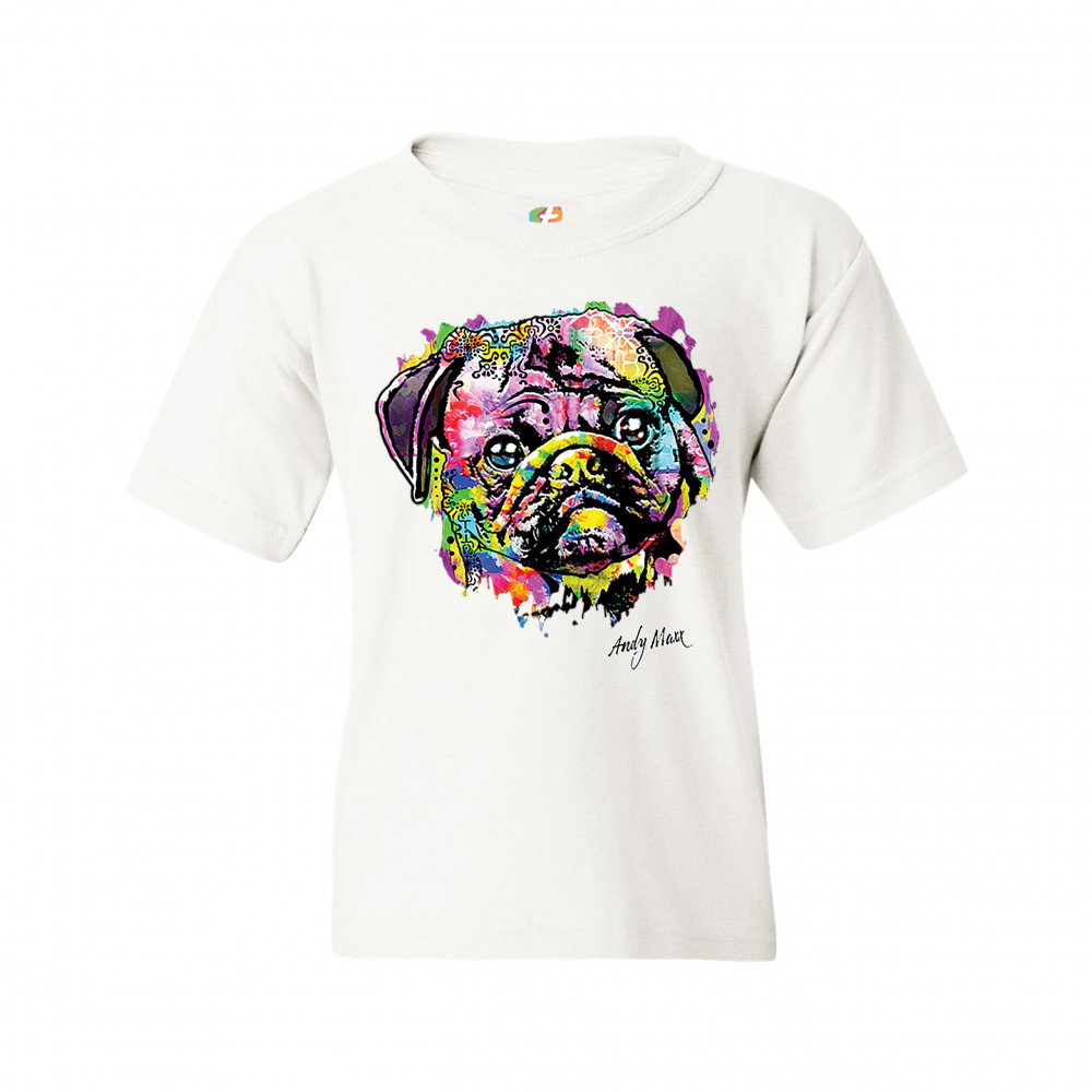 ADORABLE PUG youth t-shirt andy maxx pet owner i love my dog doggie kids white