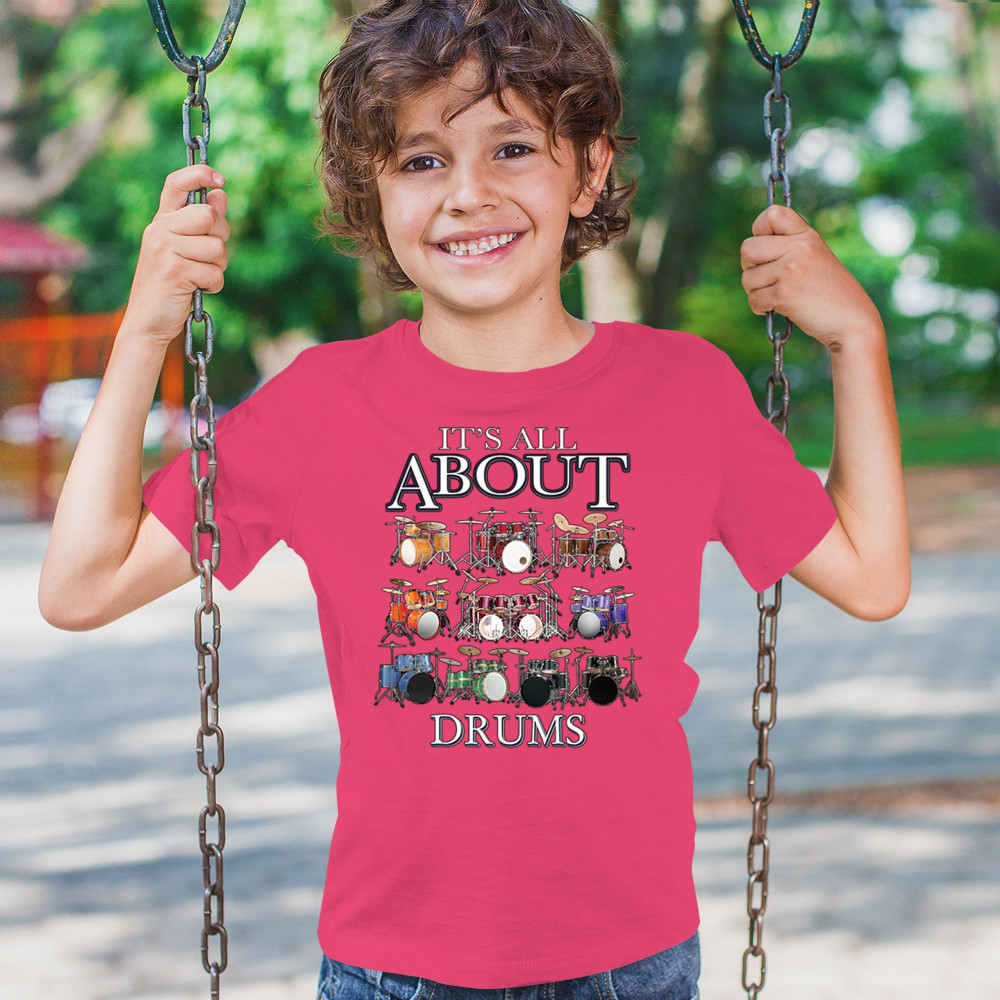 Bold design for drummers featuring colorful drum kits. Great for music students, percussion fans, band geeks, and rhythm lovers everywhere.