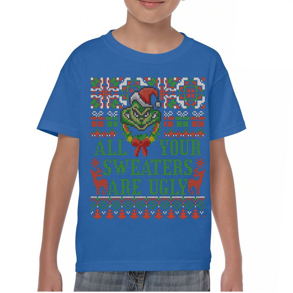 ALL YOUR SWEATERS ARE UGLY youth t-shirt funny merry christmas rudolph kids royal blue