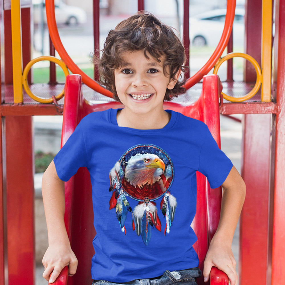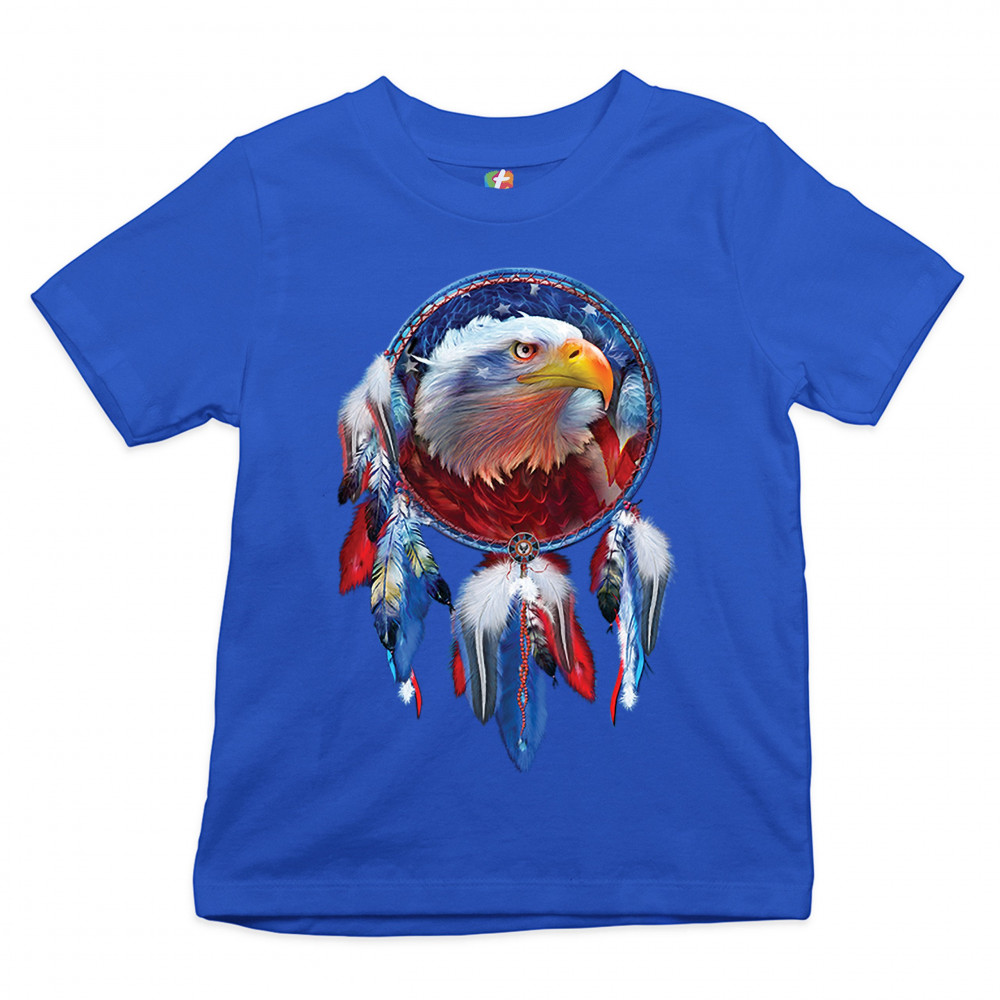 AMERICAN BALD EAGLE DREAMCATCHER youth t-shirt native american patriotic kids royal blue