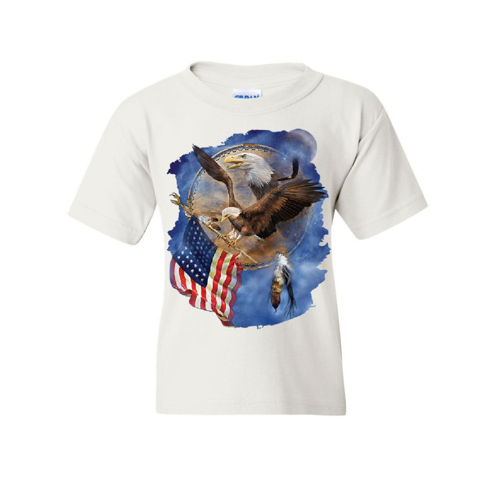BALD EAGLE DREAM CATCHER american bald eagle holding a flag youth t-shirt patriot dreamcatcher kids tee white