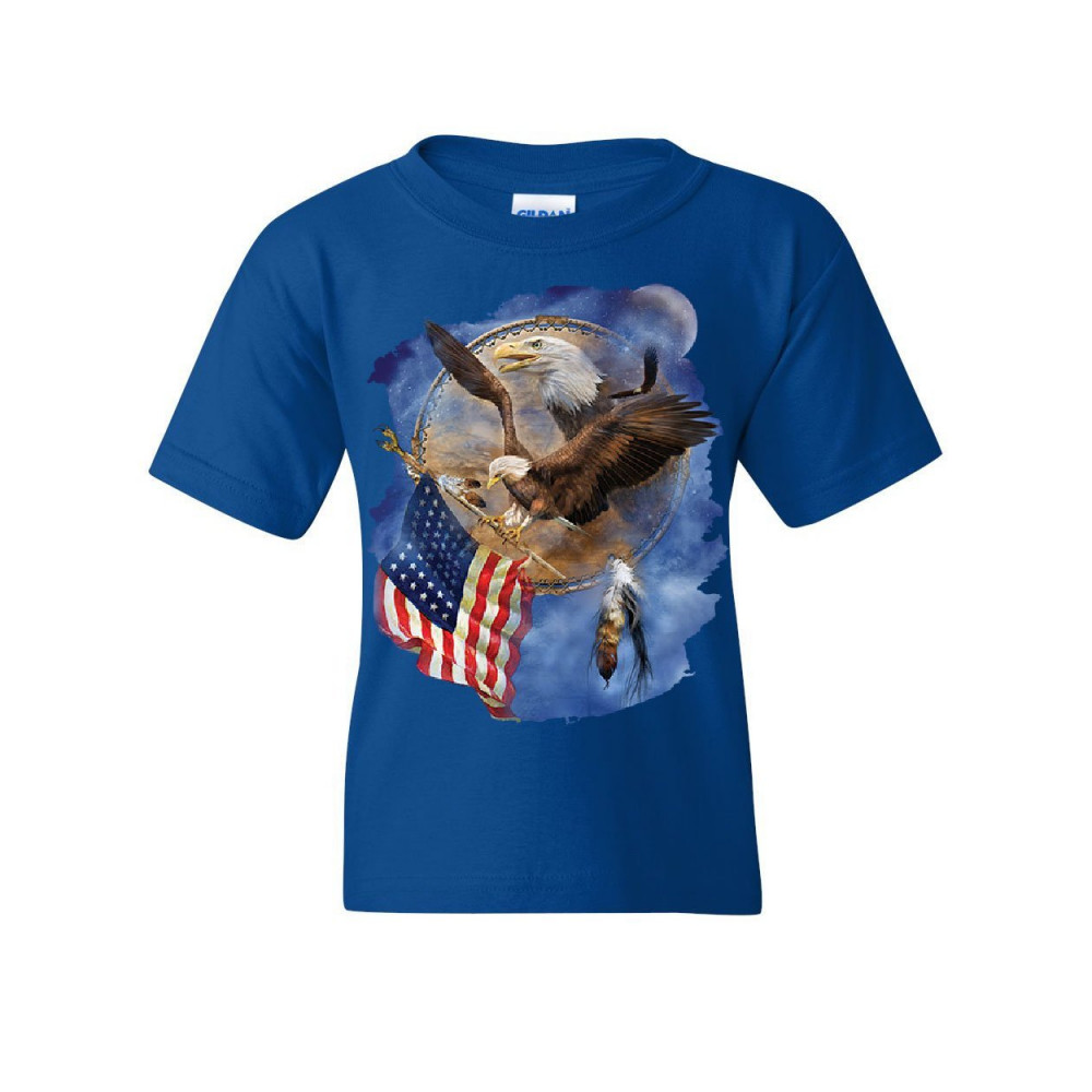 BALD EAGLE DREAM CATCHER american bald eagle holding a flag youth t-shirt patriot dreamcatcher kids tee royal blue
