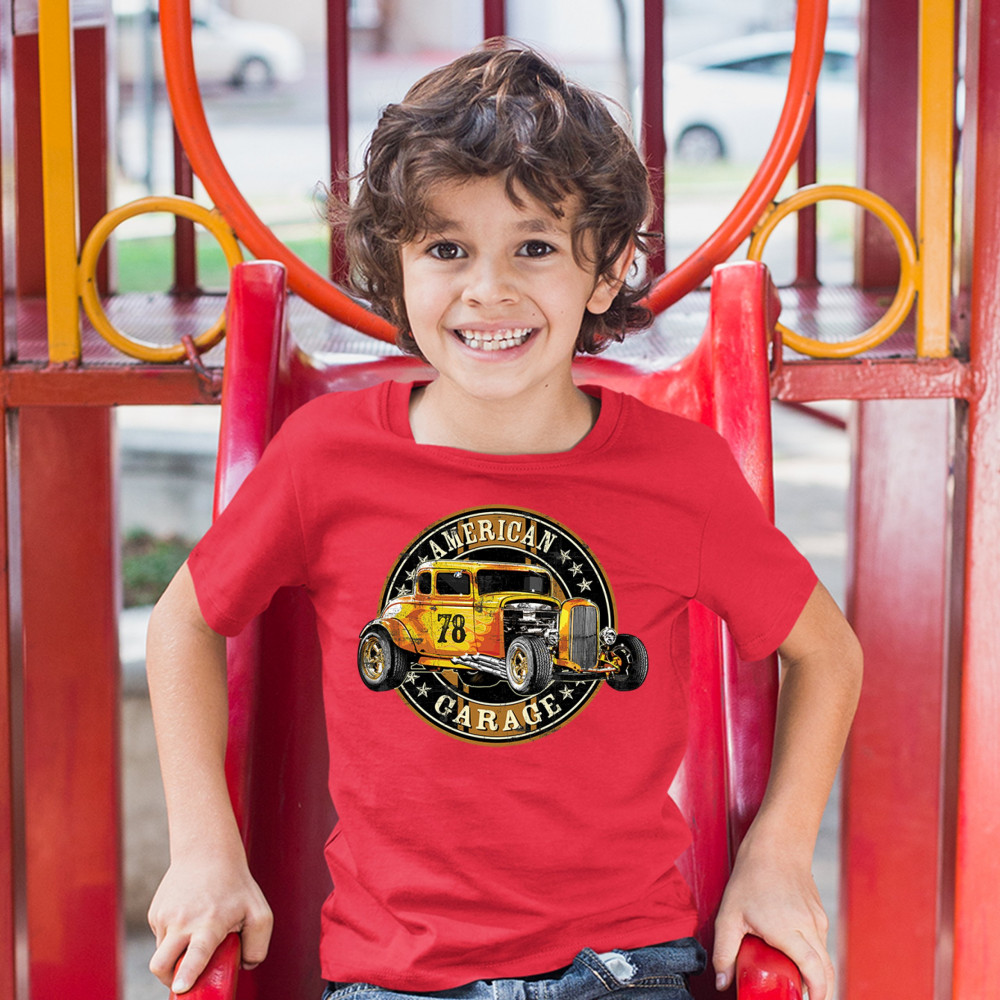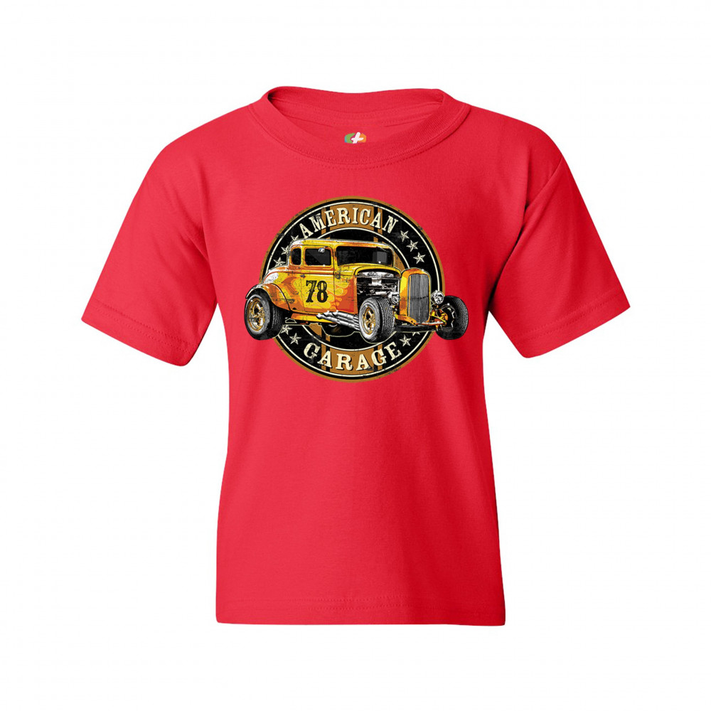 AMERICAN GARAGE youth t-shirt retro hot rod vintage american muscle kids red