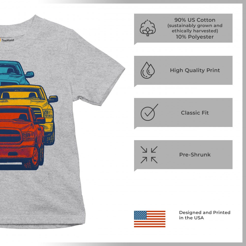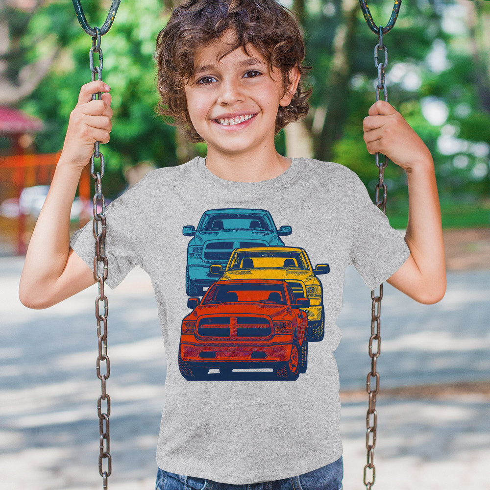 Boldly stacked and powerfully styled, this multicolor truck design showcases red, yellow, and blue pickups in a vertical formation. Made for fans of lifted truck culture, horsepower, and off-road pride, it celebrates diesel grit, road attitude, and the spirit of truck meets and gearhead unity.