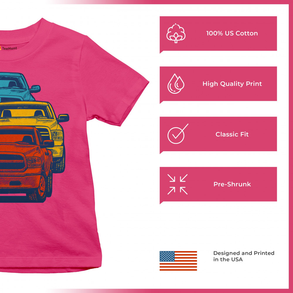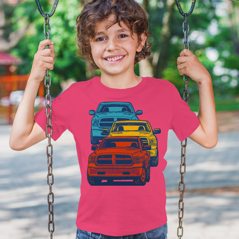 Boldly stacked and powerfully styled, this multicolor truck design showcases red, yellow, and blue pickups in a vertical formation. Made for fans of lifted truck culture, horsepower, and off-road pride, it celebrates diesel grit, road attitude, and the spirit of truck meets and gearhead unity.