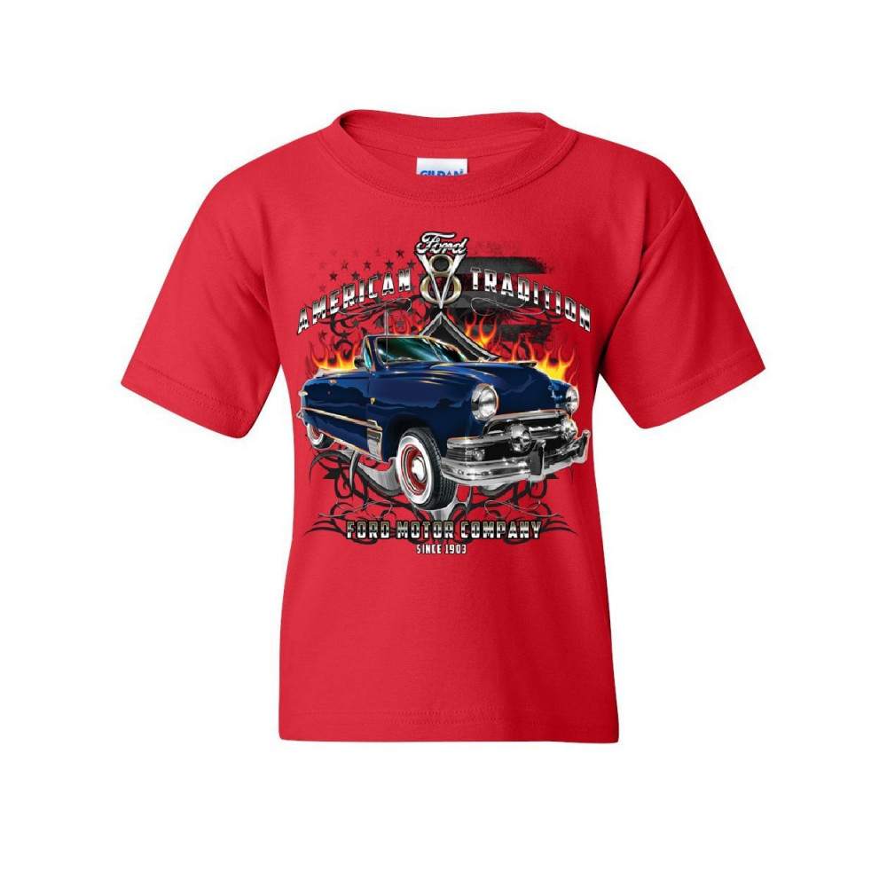 AMERICAN TRADITION ford motor company youth t-shirt classic since 1903 kids tee red