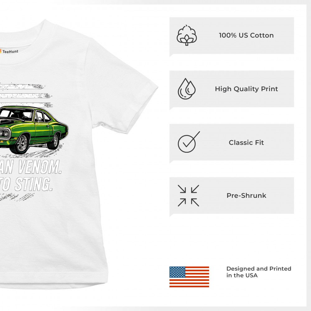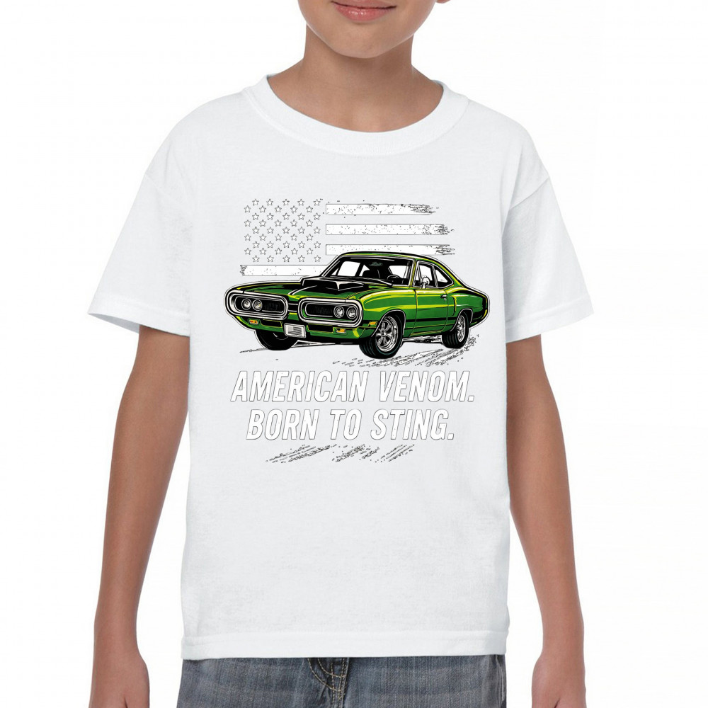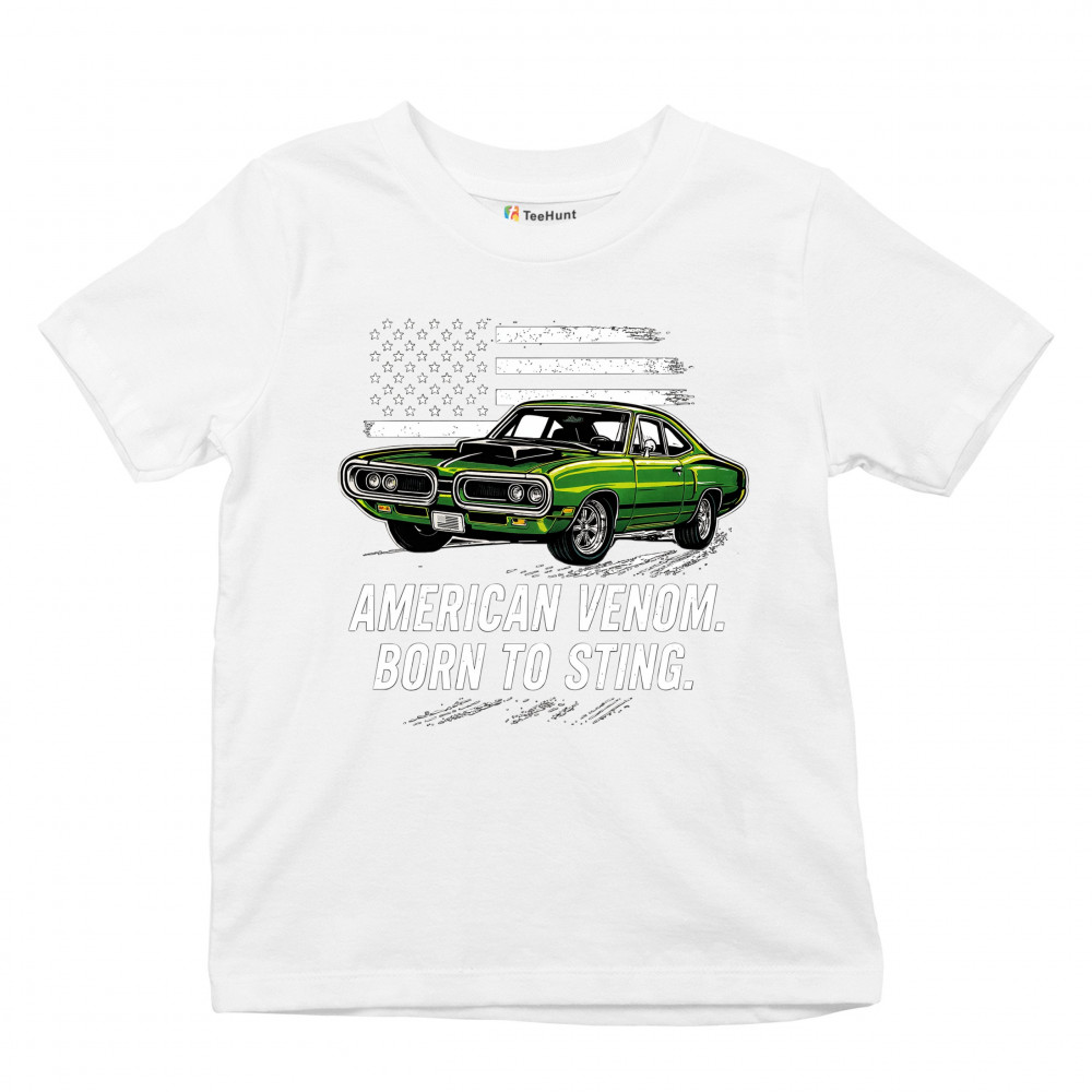Inject venom into your street style with this bold green muscle car design. With “Born to Sting†power and a backdrop of American pride, this graphic is perfect for Scat fans, gearheads, and drivers who embrace speed, dominance, and the sound of true muscle. Rule car meets, rev battles, and highway runs with unmatched attitude.