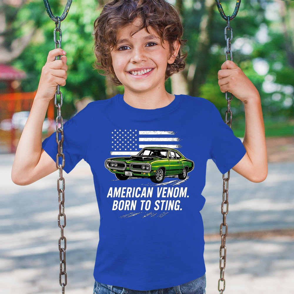 Inject venom into your street style with this bold green muscle car design. With “Born to Sting†power and a backdrop of American pride, this graphic is perfect for Scat fans, gearheads, and drivers who embrace speed, dominance, and the sound of true muscle. Rule car meets, rev battles, and highway runs with unmatched attitude.
