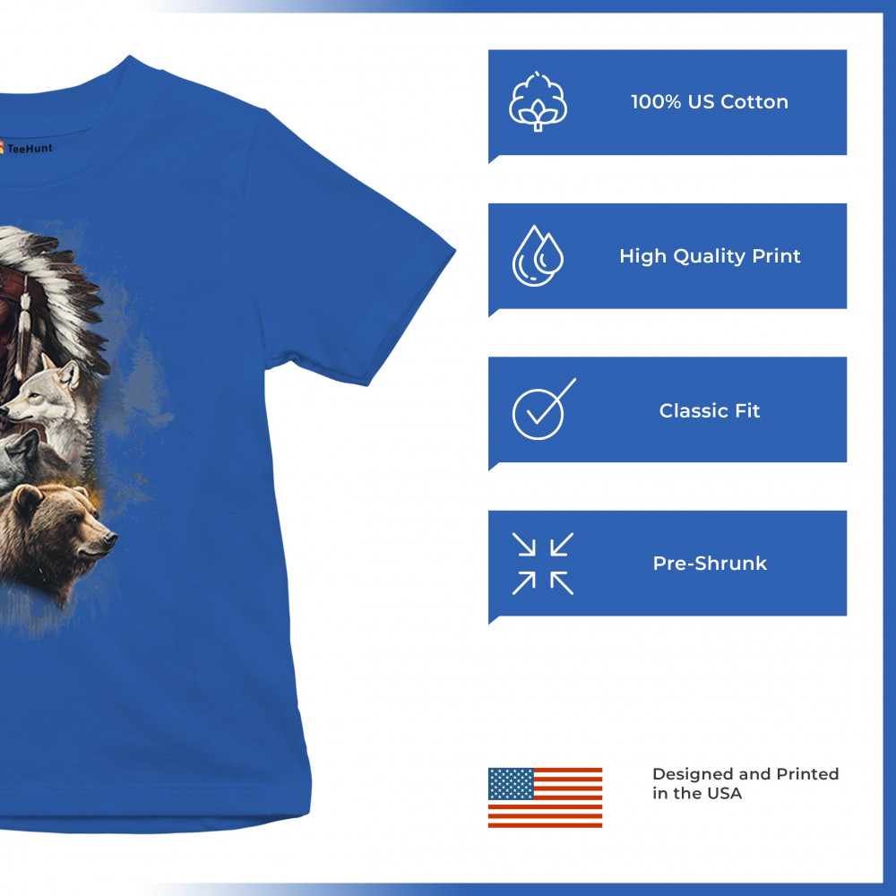 Celebrate spiritual strength and heritage with this design featuring a Native American elder alongside wolves and a bear. This tribal and totemic art reflects wisdom, guardianship, and deep forest spirit energy. Perfect for cultural pride, animal lovers, and those connected to spiritual symbolism in nature.